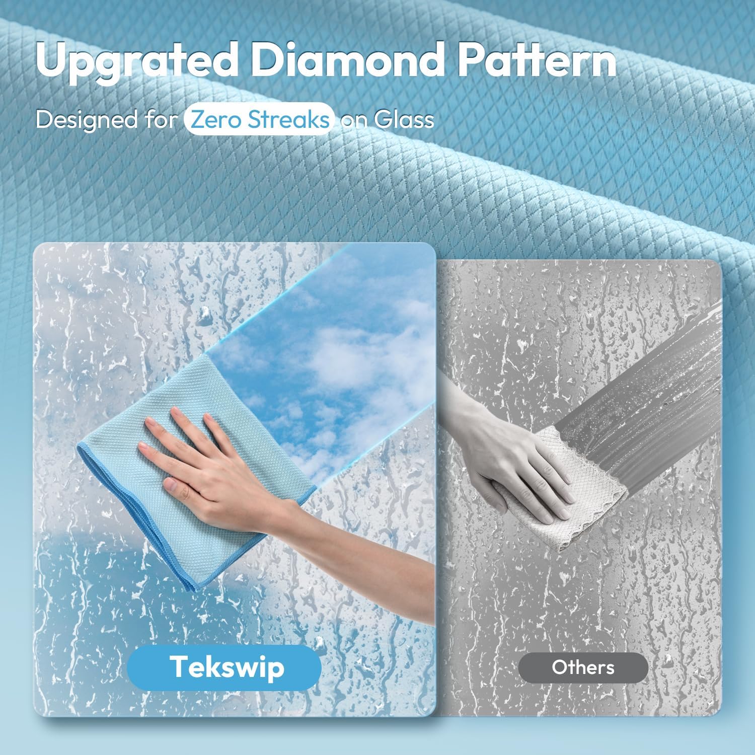 - [Unique Streak-Free Texture] The unique diamond pattern is expertly designed to wipe away messes without leaving streaks behind. It effortlessly absorbs water for a perfectly clear, making these microfiber cleaning cloths the ultimate choice for cleaning windows, mirrors, and any glass surface.