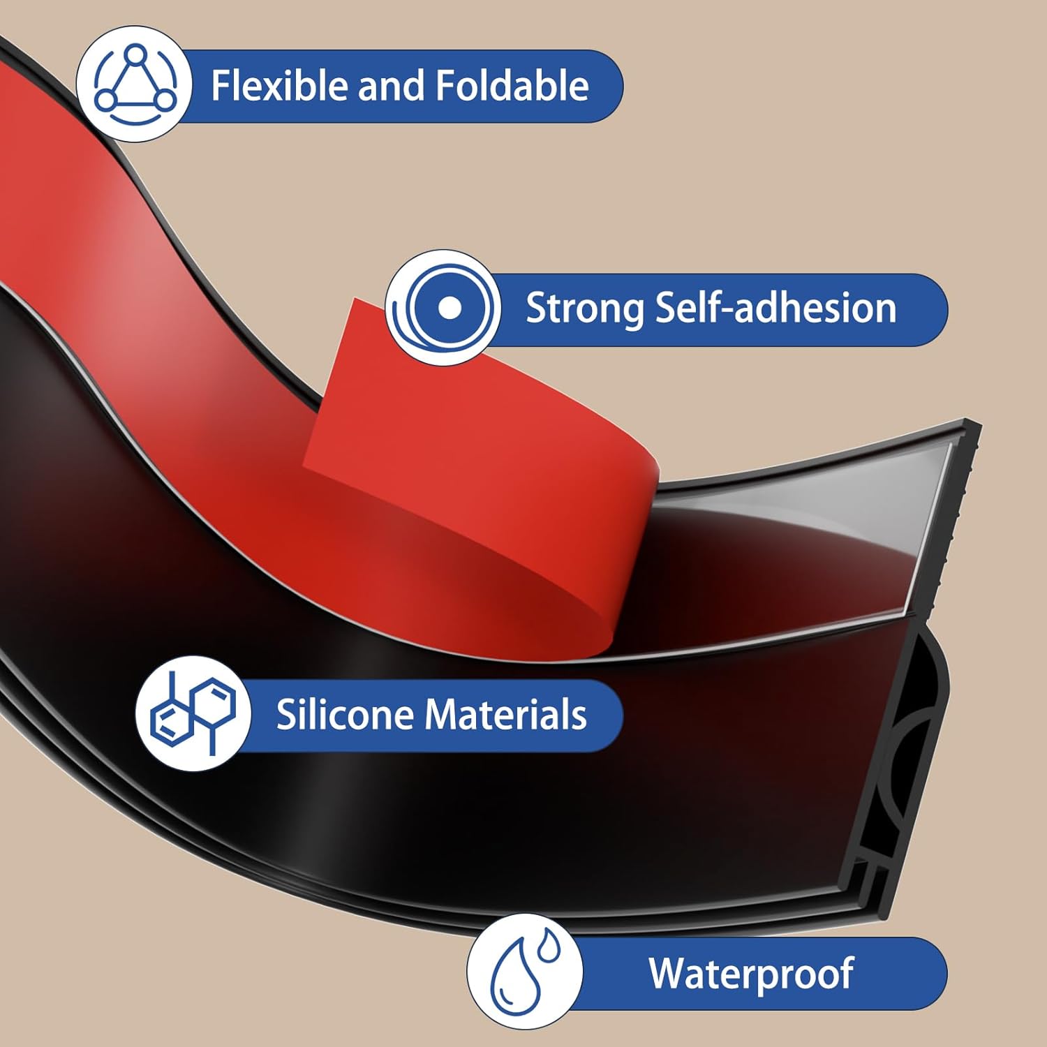 - Multi-Purpose Door Draft Stopper: The under door draft stopper can effectively block airflow, prevent cold wind from invasion and heat loss in winter, keep the room cool in summer, and ensure an ideal room temperature environment. The self-adhesive under door seal can also block light, dust, insects and odors, etc., and has a certain sound insulation effect. It is very suitable as a windproof sound insulation strip for exterior doors.