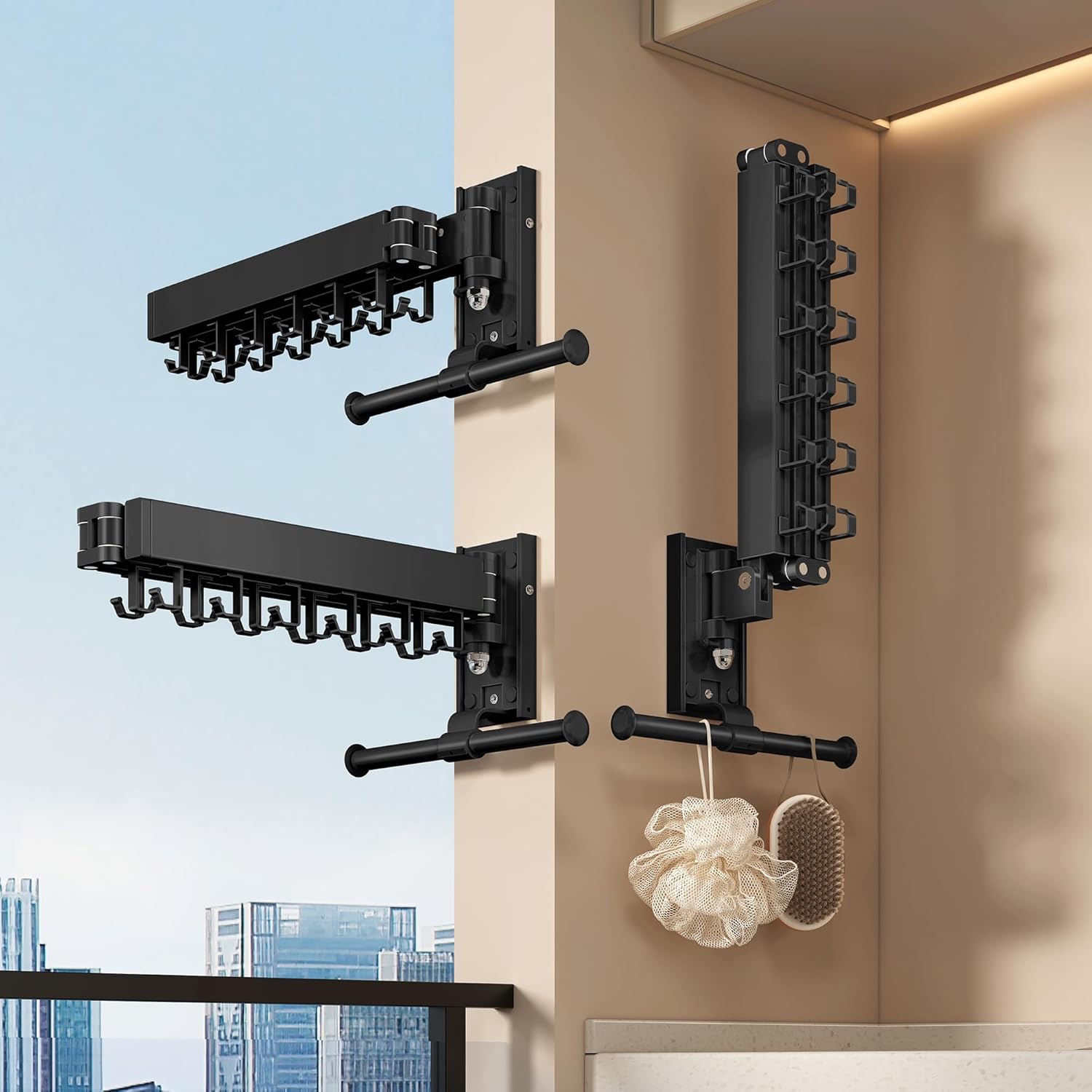 - Wall Mounted Collapsible Design β Space-Saving Drying Solution: This upgraded wall mounted clothes drying rack folds left, right, and even upward, maximizing your space. Perfect for balconies, laundry rooms, or small apartments where every inch counts.