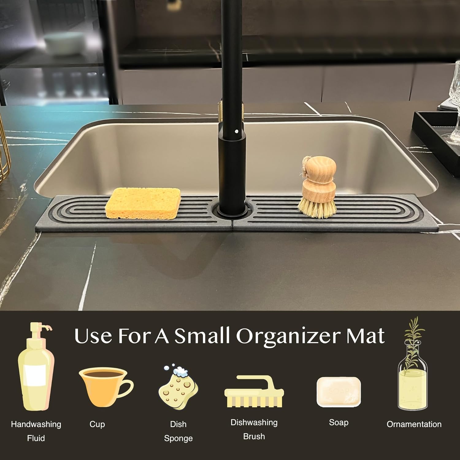 - Drying Fast: Our Faucet mat for kitchen sink is crafted from natural diatomacues earth. The diatomite stone's small holes enable amazing water absorption, quickly soaking up splashes and self-drying within minutes. Say goodbye to annoying drips and keep everything dry.