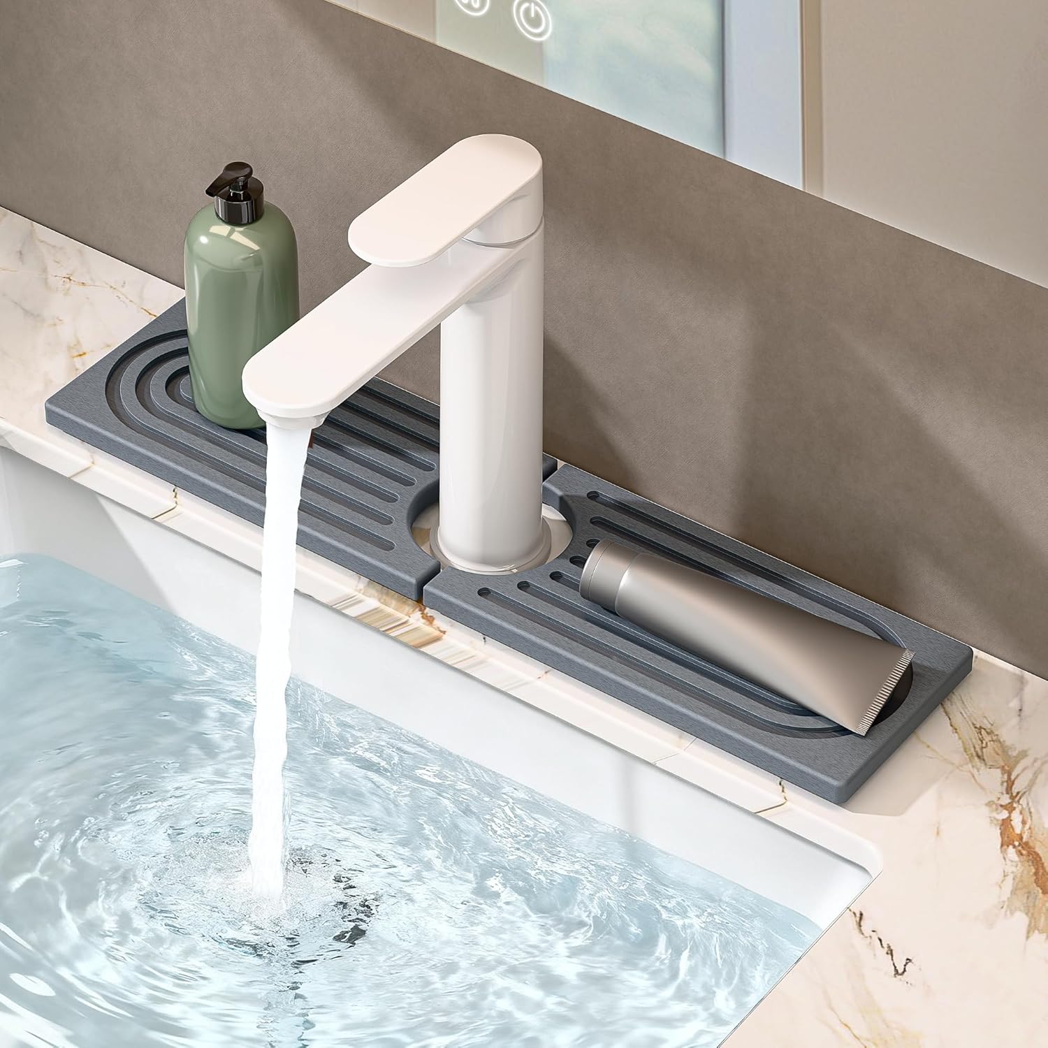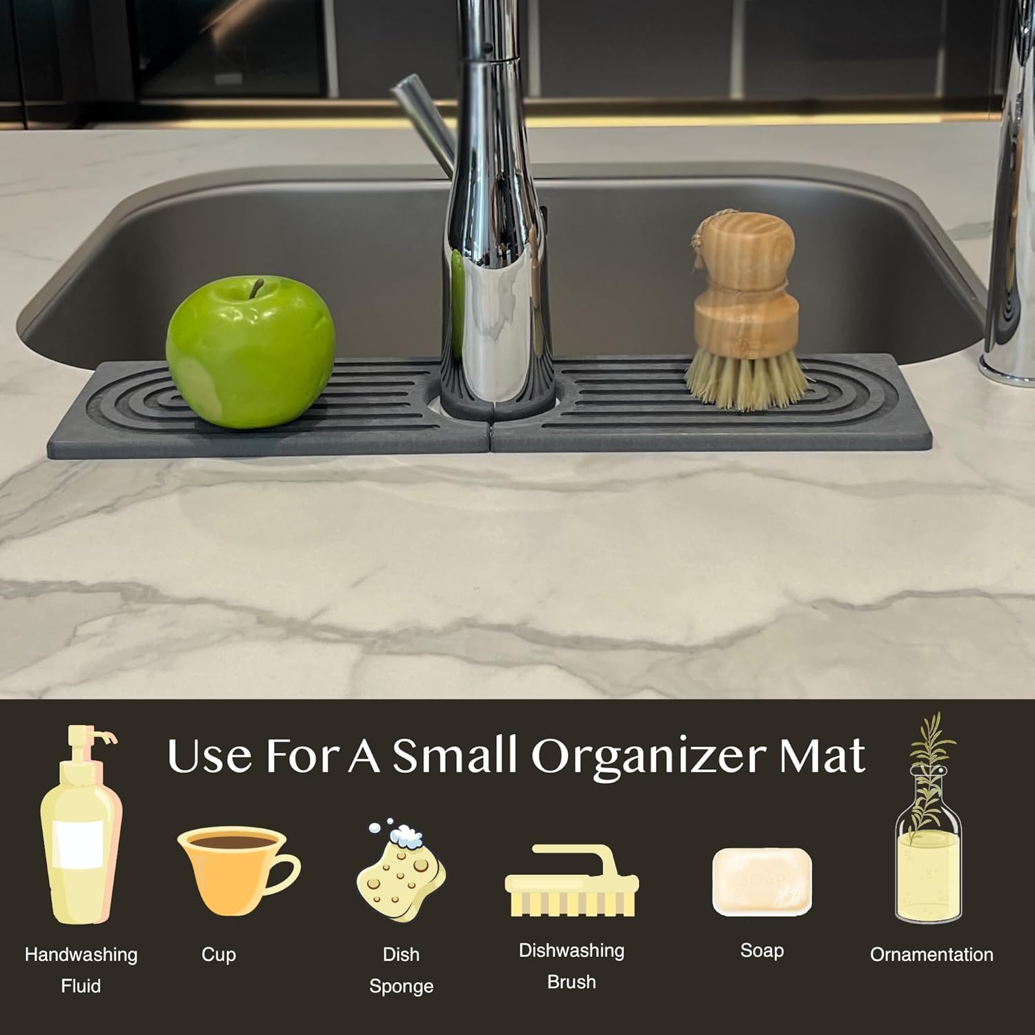 - Drying Fast: Our Faucet mat for kitchen sink is crafted from natural diatomacues earth. The diatomite stone's small holes enable amazing water absorption, quickly soaking up splashes and self-drying within minutes. Say goodbye to annoying drips and keep everything dry.