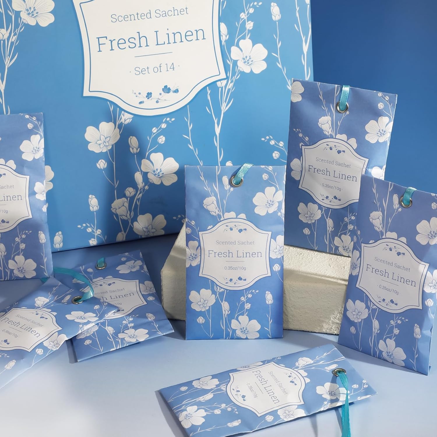 - PACKAGE INCLUDED - Each pack includes 14 individually wrapped home fragrance sachets, 14 x 0.35oz, Fresh Linen scent.