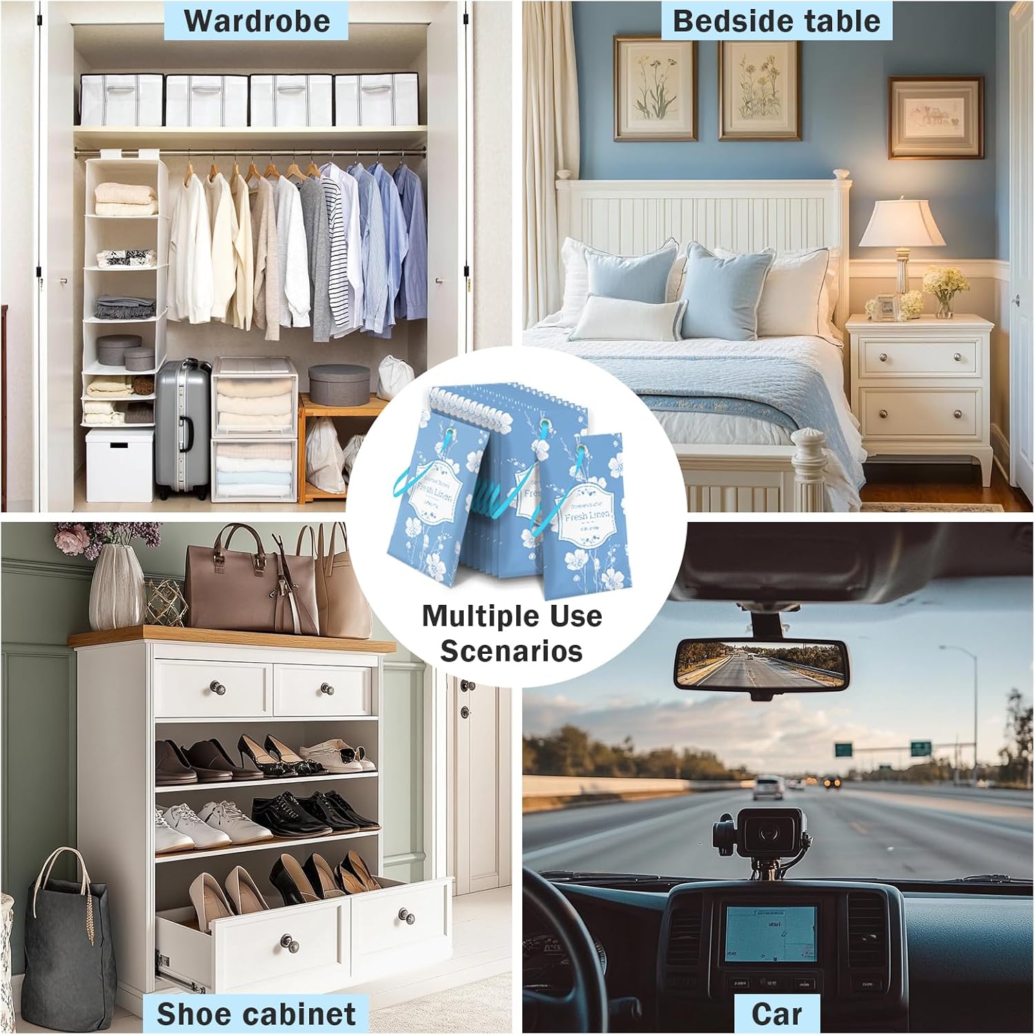 - Portable & Convenient: The compact design makes it easy to carry and place anywhere, each sachet has a rope, you can choose to place it directly on the cabinet, or you can hang it up.