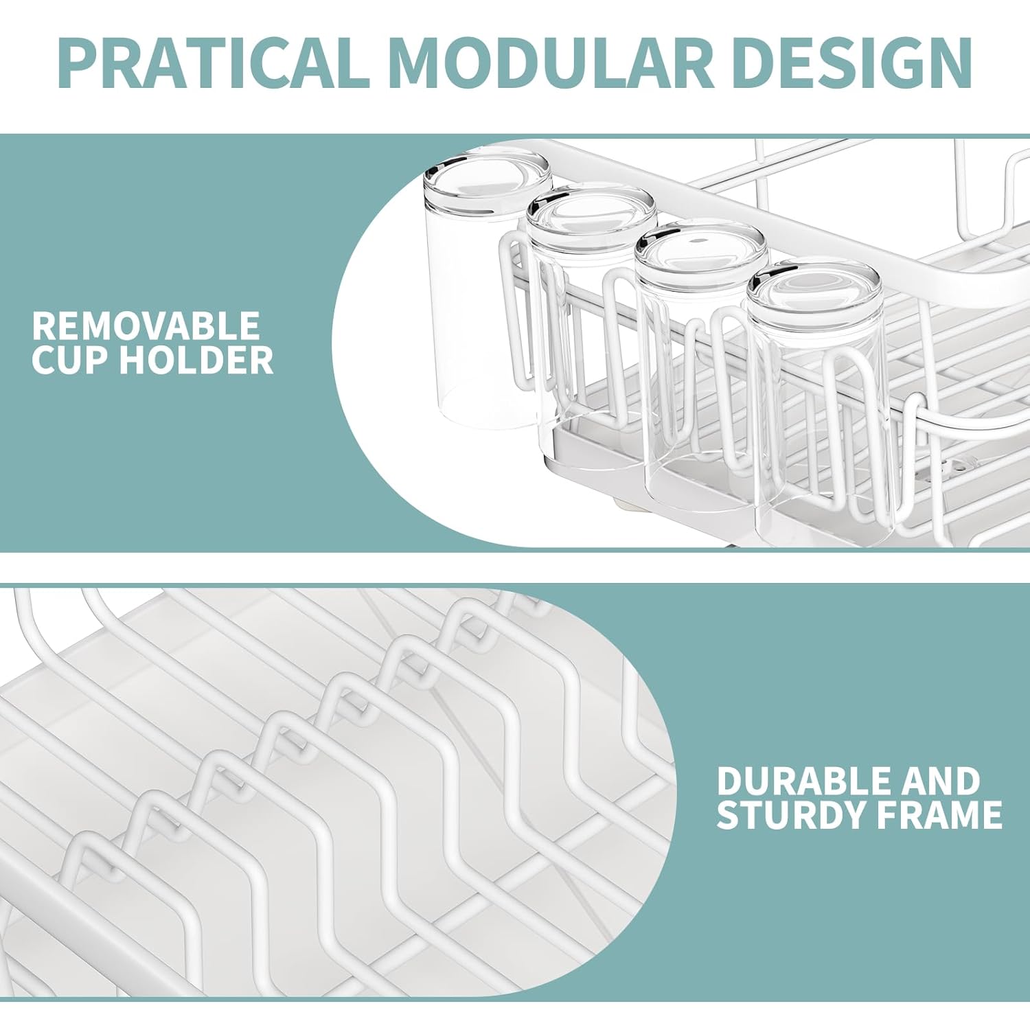 - 【Removable Cup Holder】 The cup holder of dish dariner rack is removable and has space for 4 cups, enough to meet your daily cup storage needs, and provides a practical and space-saving solution for drying cups and mugs