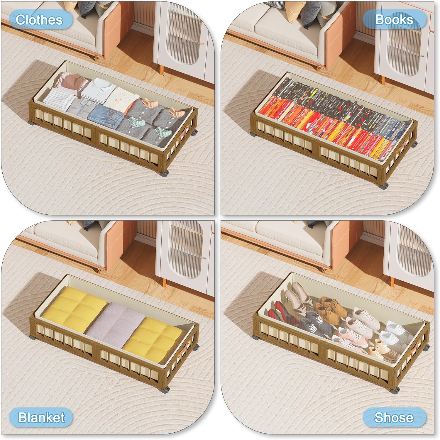 - 【Stylish Look】 Natural Bamboo material make the rolling under bed storage look simple and elegant. 2 PACK Under bed Storage are great for bedroom, living room, dorm and basement. Choose it to make your tiny space a new look!