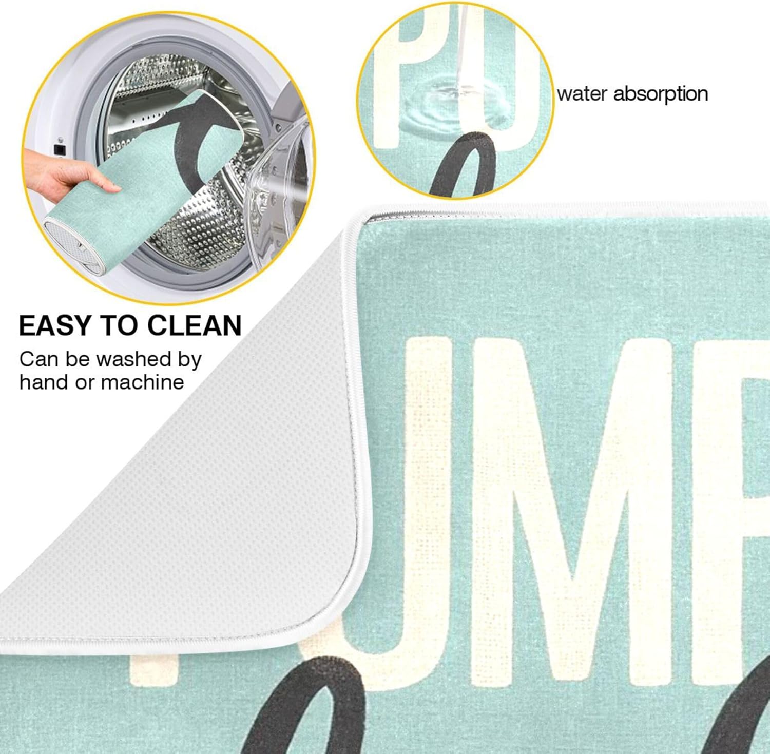 Hello Pumpkin Turquoise Fall Dish Drying Mat for Kitchen Countertop 18x24 Aqua Teal Autumn Large Drying Mat Reusable Quick Dry Dish Sink Mats Easy Clean Decorative Essentials