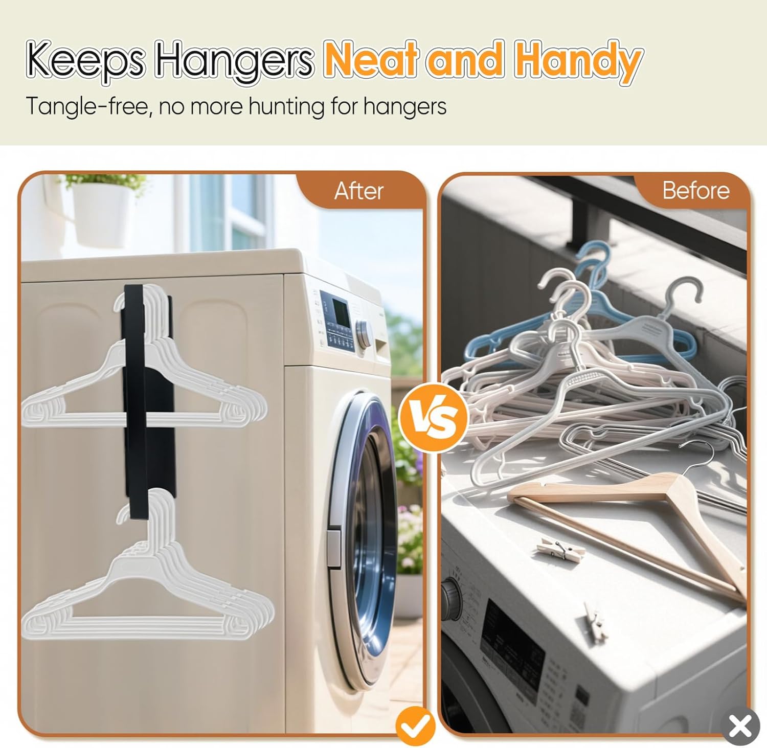- Laundry Room Organization: Organize and store hangers, keep them neat and tangle-free, bringing order to your laundry space. Hangers stay within easy reach—no more bending or searching. Makes hanging clothes easier and streamlines your laundry routine