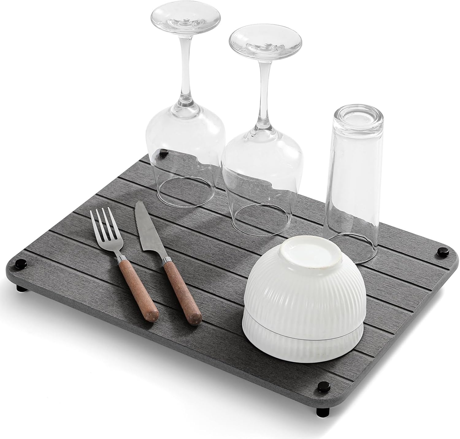Stone Dish Drying Mat for Kitchen Counter, Water Absorbing Bathroom Tray Sink Organizer, Diatomaceous Earth Countertop Dish Rack Riser Sponge Holder Soap Dish, Dark Gray, 16" x 12"