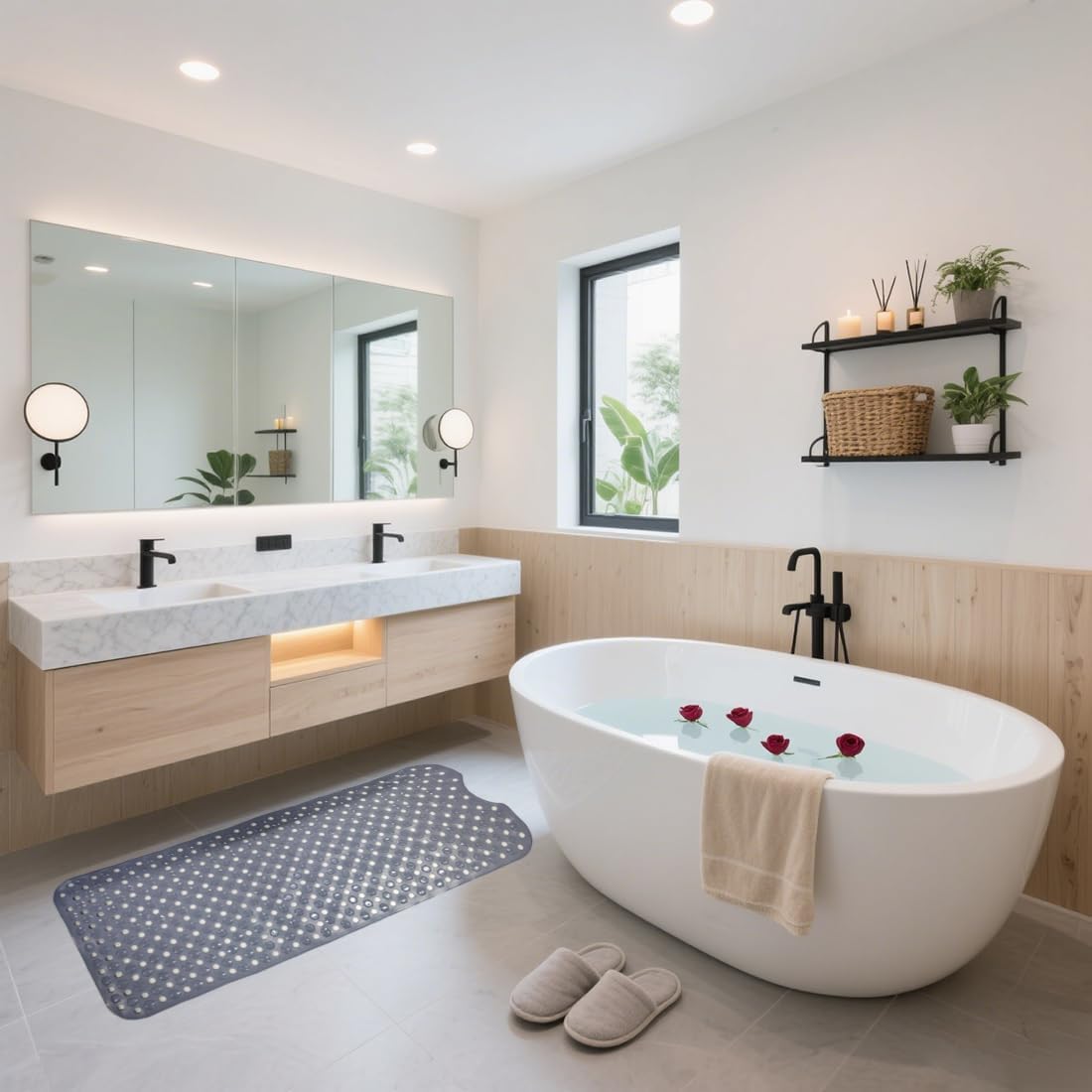 - 【PERFECT FIT & ALL-AROUND PERFORMANCE】- Comfort, Safety & Versatility: Generously sized at 39" x 16" to fit most standard bathtubs and shower bases comfortably. The textured surface of this bath mat for tub non slip provides gentle massage and extra grip under soapy feet. Lightweight yet sturdy, this bathtub mat non slip is the ideal solution for families, seniors, and anyone seeking a safer, more comfortable bathing experience