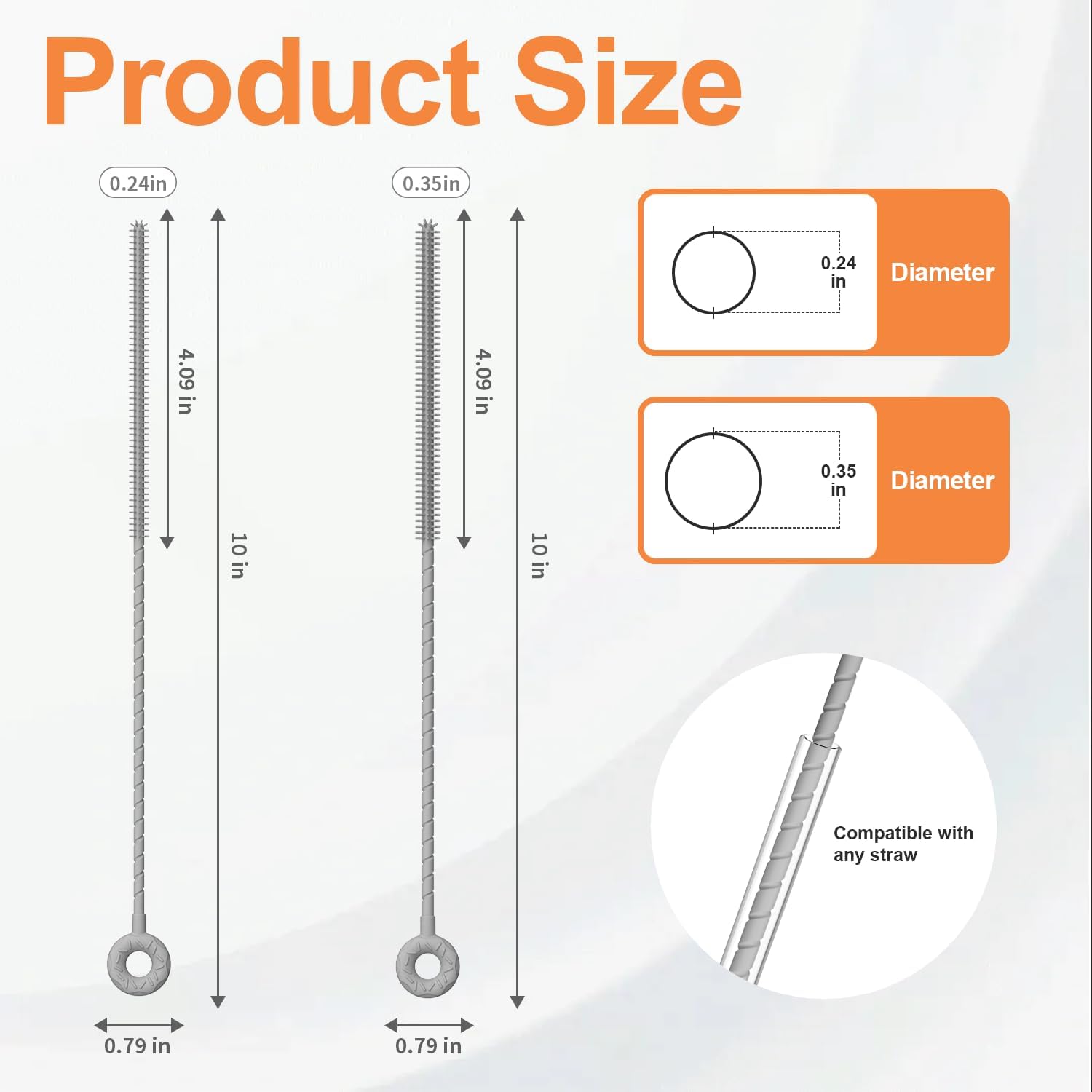 - Multi-Scenario Application: This silicone straw cleaner brush set features 0.24" (6 mm) and 0.35" (9 mm) diameters, 10" (254 mm) long, designed to perfectly clean both narrow reusable straws and wider straws, reaching deep inside to remove residue and grime.