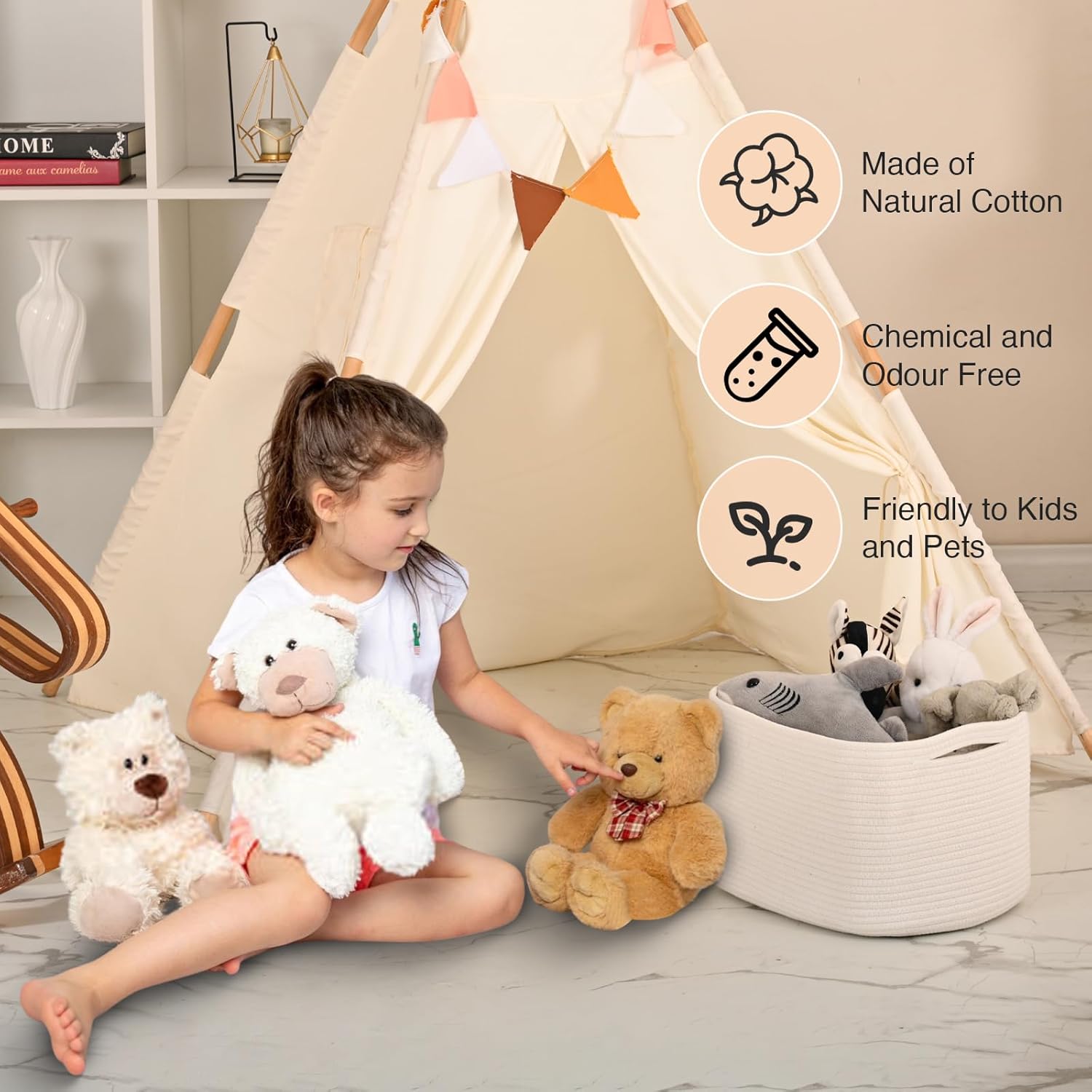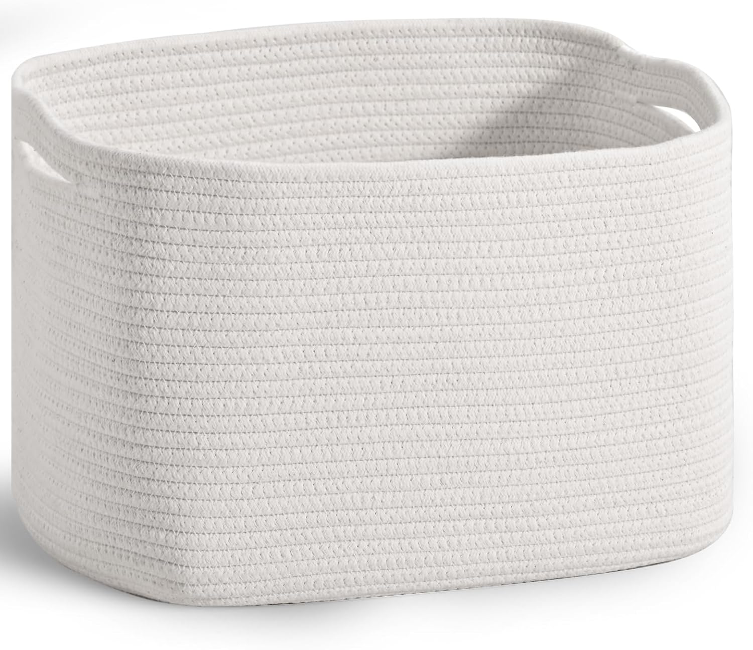 Woven Cotton Rope Storage Basket for Organizing, Cute Decorative Baskets for Gifts Empty, Organizer Bins for Dog Toy, Baby Laundry, 15“×11”×9.5“, Off White