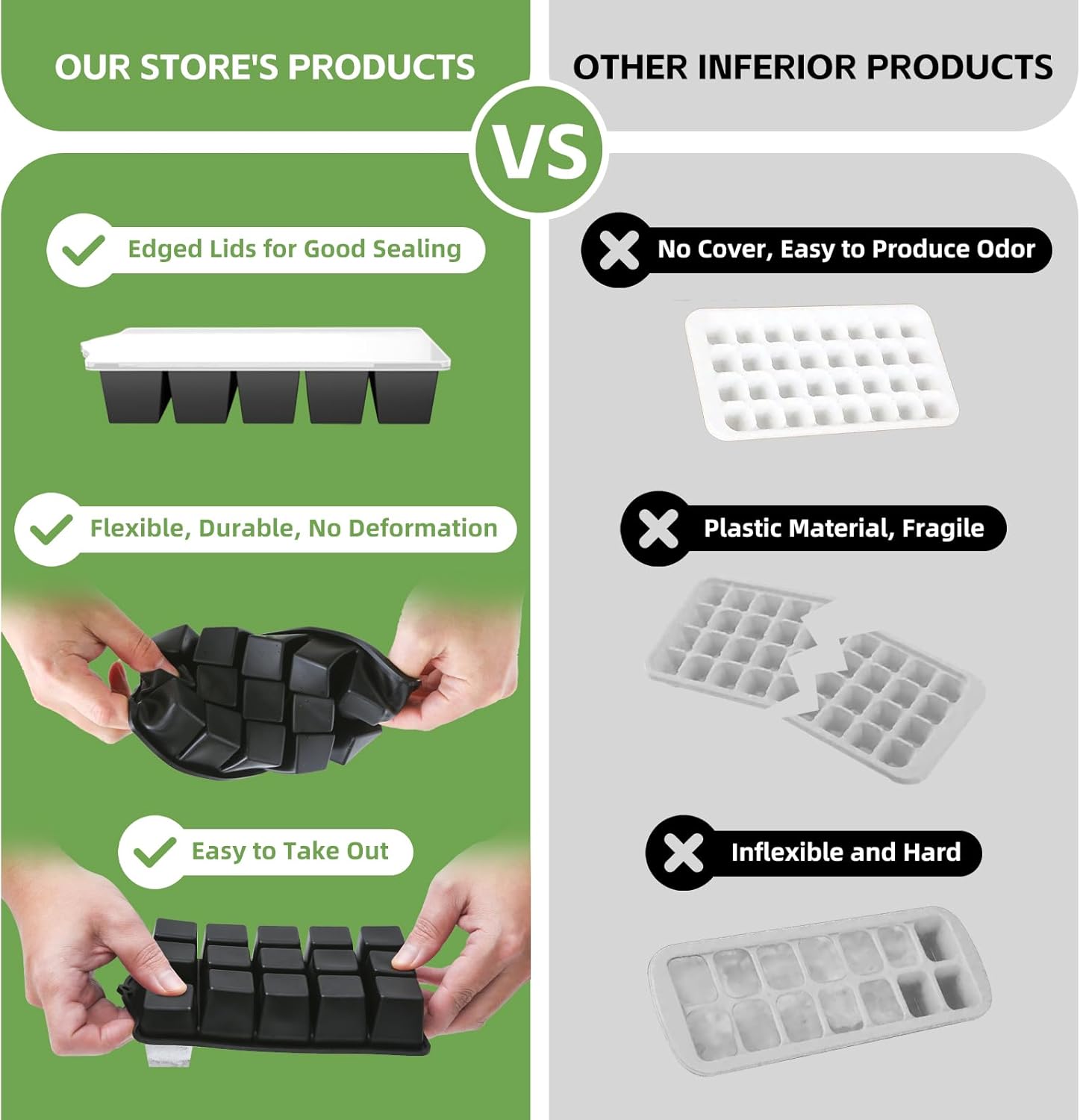 - 【Trusted Food-Grade Silicone】Safety first! Our silicone ice cube trays with lid are made from BPA-free, food-grade material.This durable material withstands extreme temps, resisting warping and odors. A must for every family! These ice cube tray silicone make clean, safe ice perfect for drinks, baby food, and snacks.