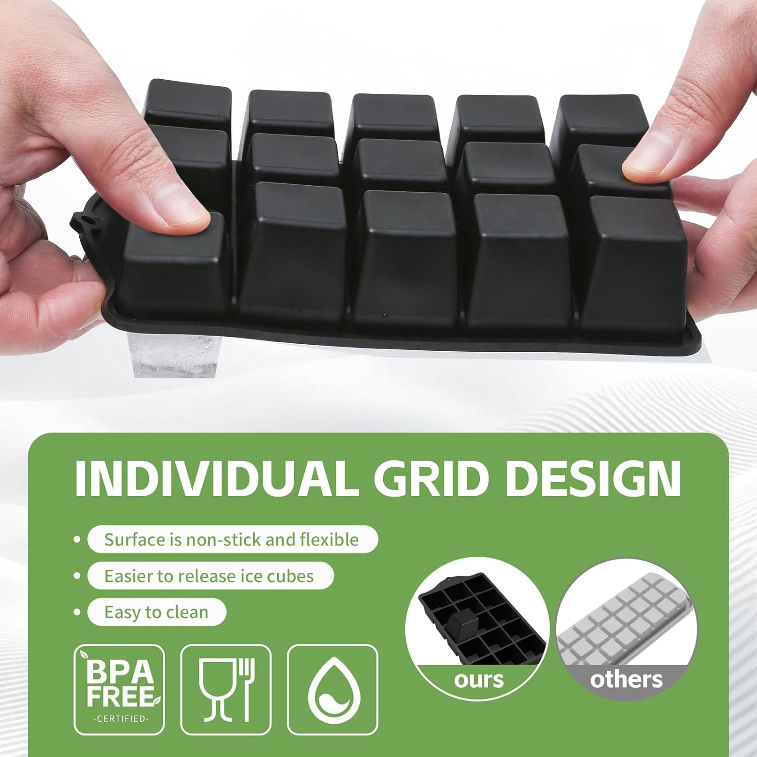 - 【Versatile Ice Tray Silicone for All Occasions】This 2-pack silicone ice trays for freezer make 30 reusable ice cubes —great for gatherings or daily use. But it’s not just for ice! Use it to portion baby food, shape chocolates, or create butter cubes. The flexible silicone allows easy removal of any frozen treat.