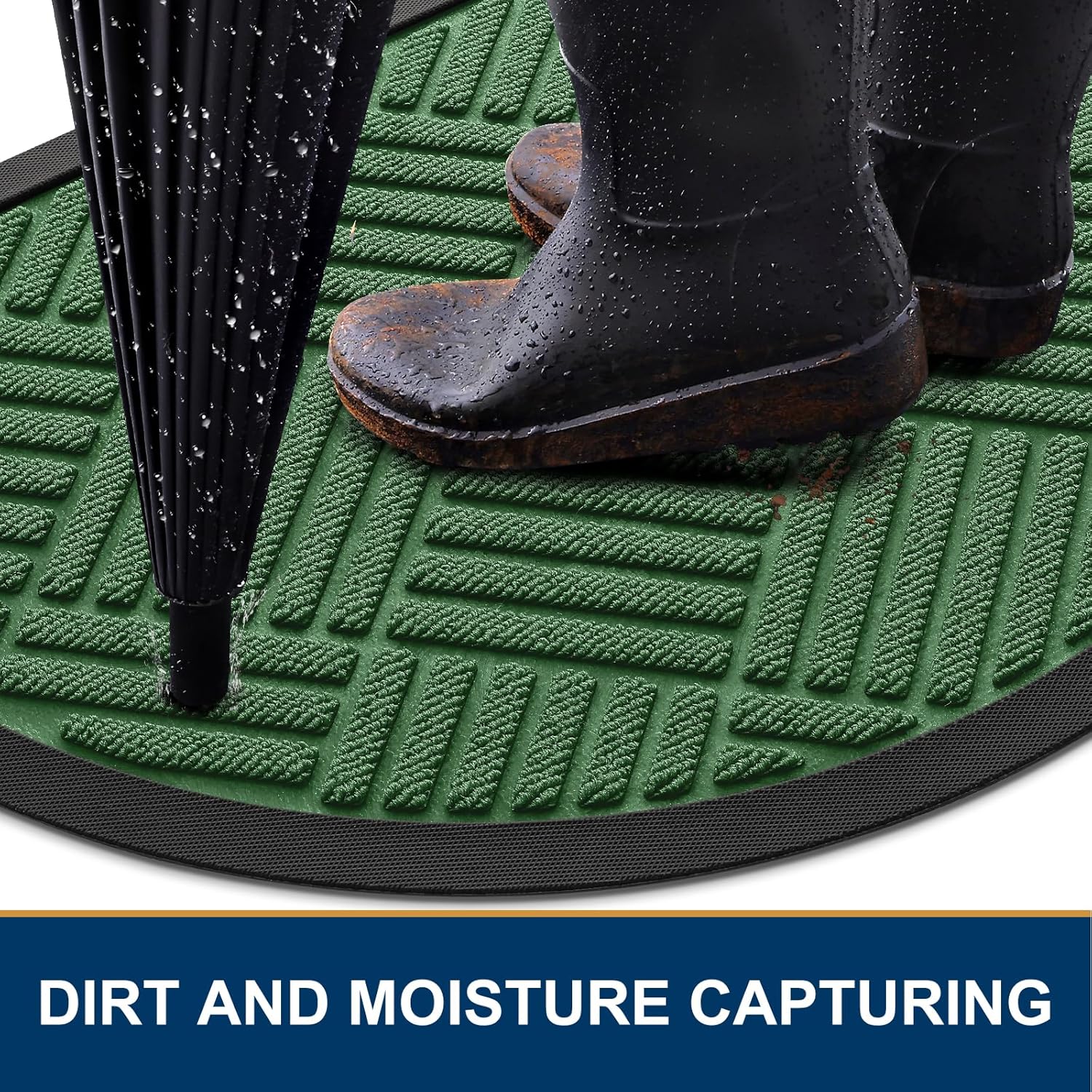 Smiry Half Circle Front Door Mat Outside Entrance, Heavy Duty Outdoor Indoor Natural Rubber Doormat, Non Slip, Trap Dirt and Moisture, Easy Clean, Low Profile Patio Porch Entryway Mat, 29.5x17, Green