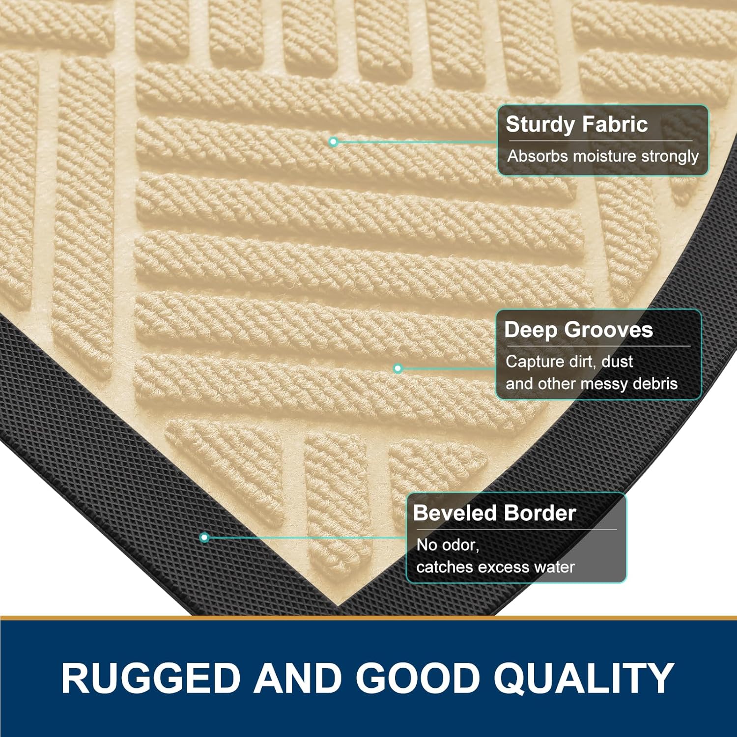 - Capture Dirt and Moisture: The surface of the Smiry door mat is crafted from woven polyester fabric. The deep grooves can effectively trap the dust, gravel, mud, sand and other clutter. The sturdy beveled rubber edge will not accumulate water. Even rainy, snowy or muddy weather will keep your home dry and clean