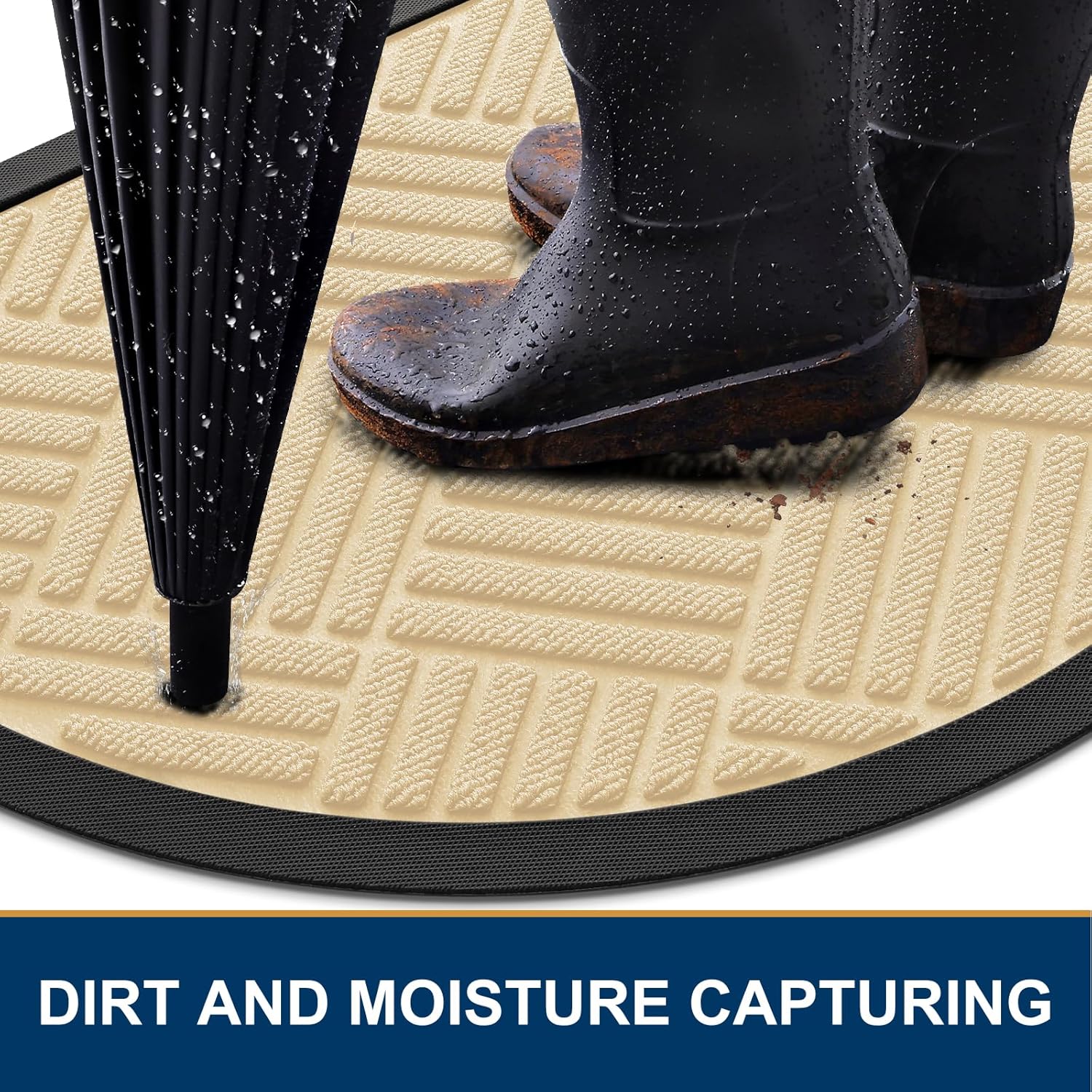 Smiry Half Circle Front Door Mat Outside Entrance, Heavy Duty Outdoor Indoor Natural Rubber Doormat, Non Slip, Trap Dirt and Moisture, Easy Clean, Low Profile Patio Porch Entryway Mat, 29.5x17, Beige
