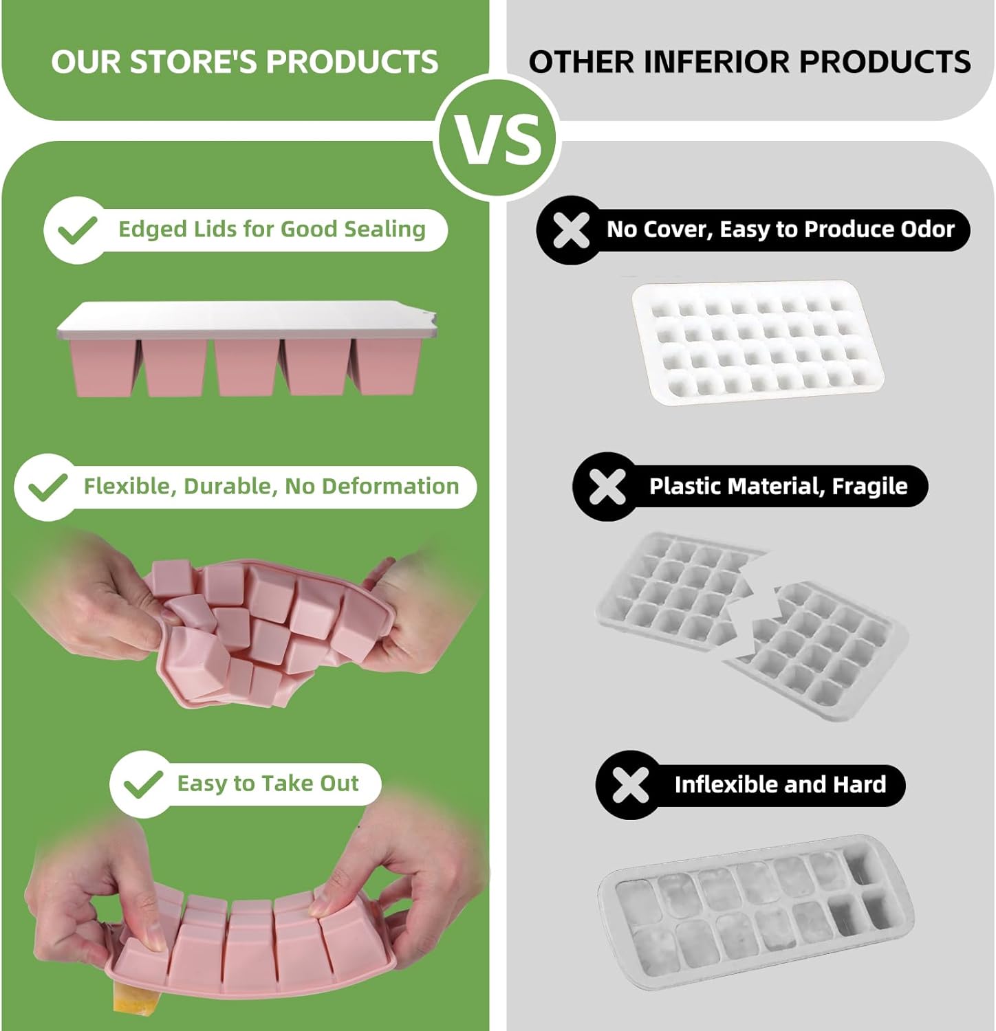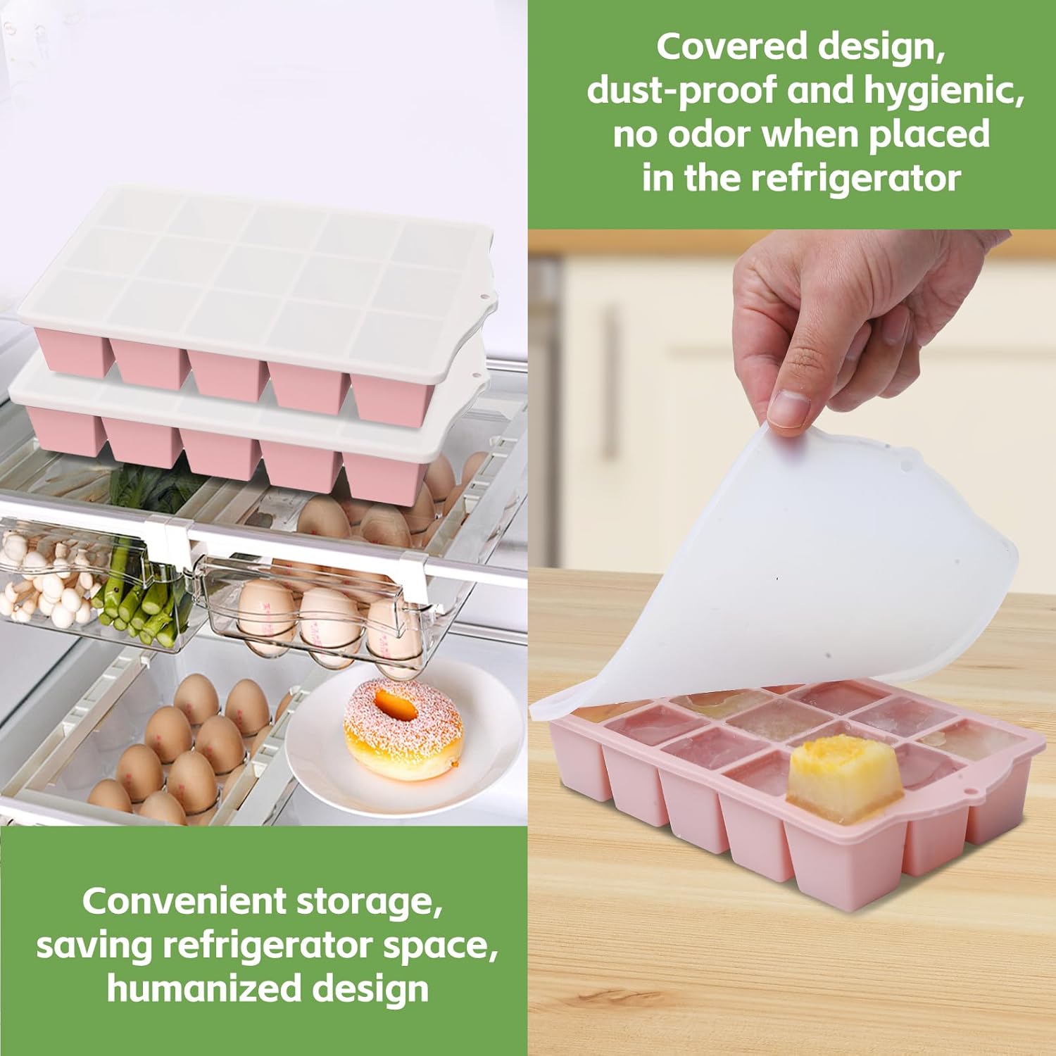 - 【Trusted Food-Grade Silicone】Safety first! Our silicone ice cube trays with lid are made from BPA-free, food-grade material.This durable material withstands extreme temps, resisting warping and odors. A must for every family! These ice cube tray silicone make clean, safe ice perfect for drinks, baby food, and snacks.
