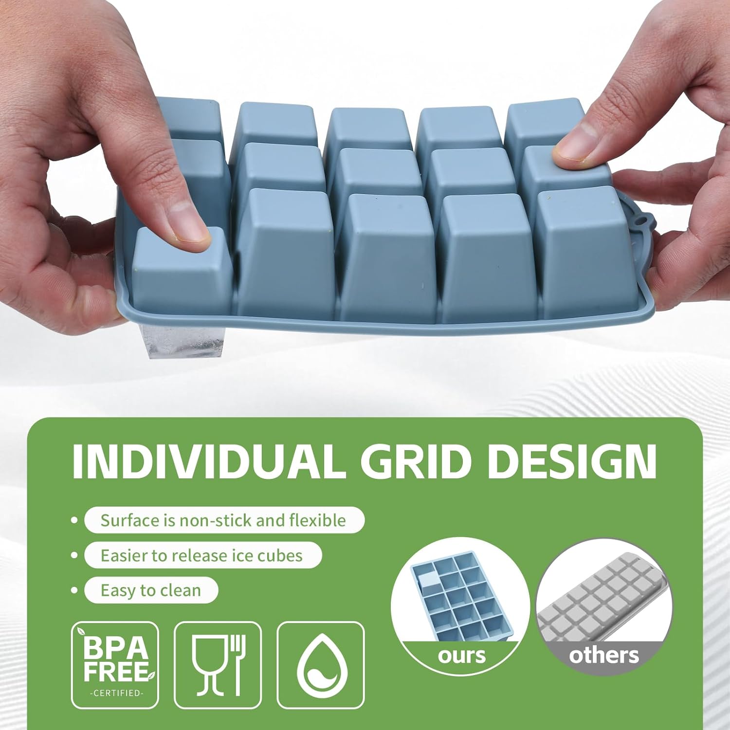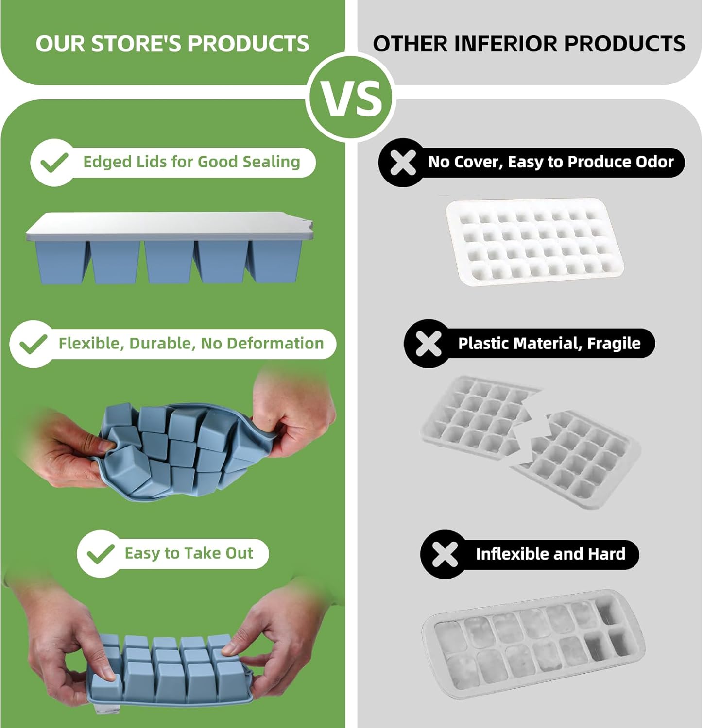 - 【Flexible & Easy-Release Ice Trays 】Our upgraded ice tray with lid features a sleek, non-stick surface for easy release. Just squeeze or push, and ice cubes pop out smoothly.Ice cube trays for freezer with lid are ideal for cocktails, smoothies, or everyday drinks, making your ice-making quick and frustration-free.