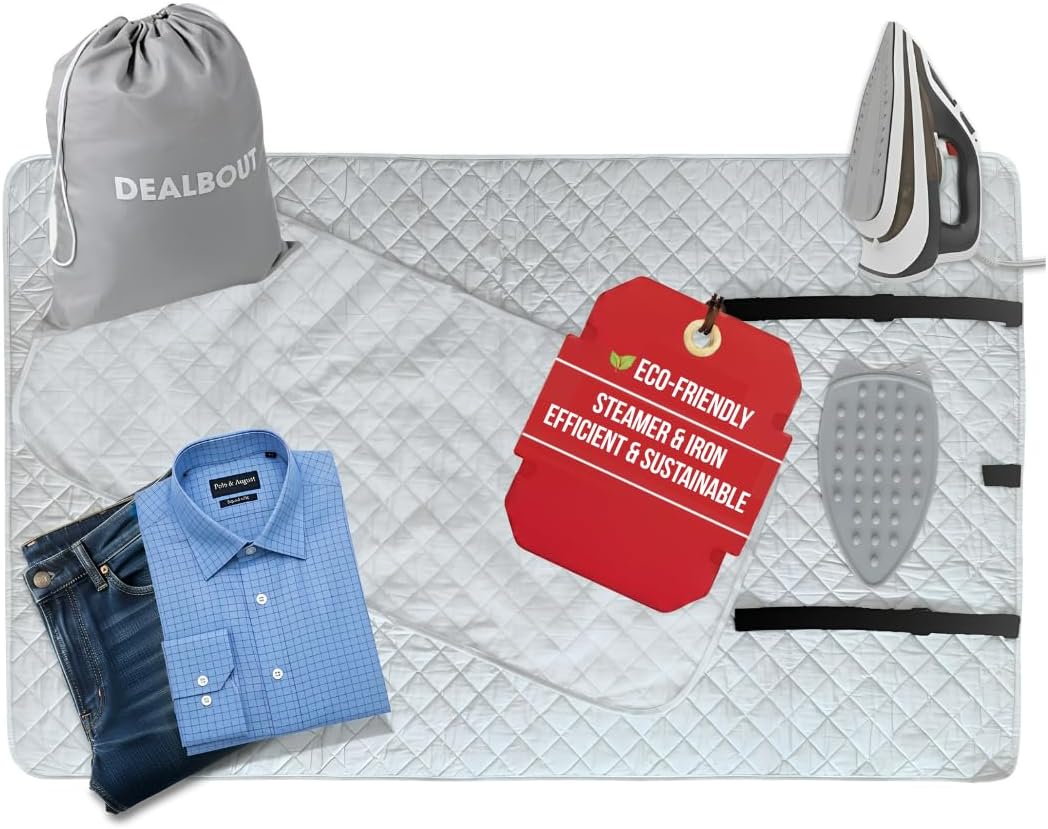 - ππππ§π πππππ¦ & ππ¨: Turn any door into a garment steaming station with elastic hanging straps. This pad is designed for vertical use perfect for dresse shirts helping release wrinkles. As a lightweight, foldable travel ironing it packs into the included bag, serving as must-have travel blanket and compact iron press. Crafted with felt layers, it can be used on the table or as a wall-mounted center also functioning as a folding and ironing machine. Its design doubles as press mat 24 wide or wool pressing, ideal for laundry and sewing projects, while the included resting plate and dummy add convenience. Made from pure cotton, the silicone heat-resistant area holds hot irons safely.