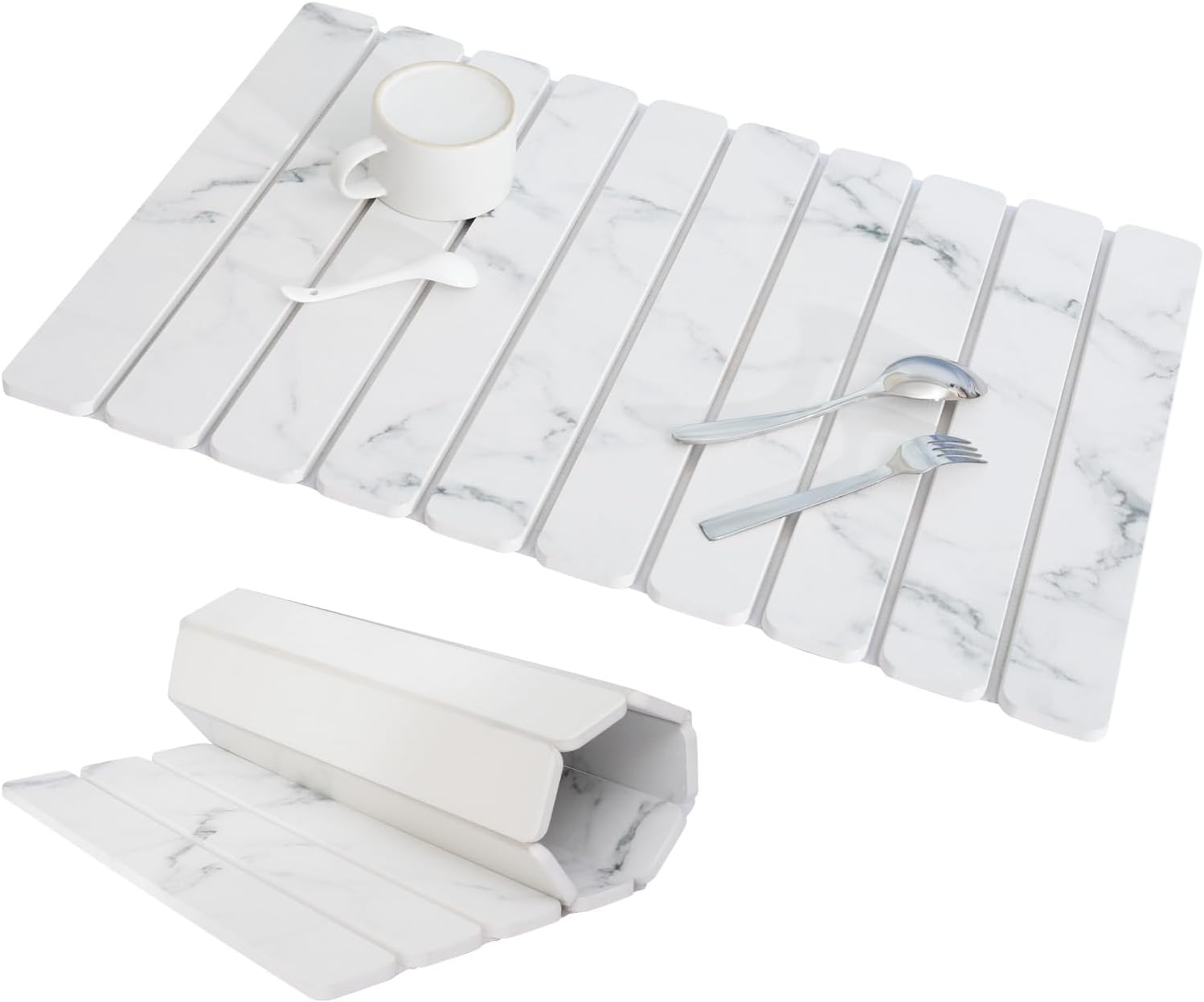 - Spacious 24"×16" Fold & Roll Design:Generous capacity fits plates bowls and pans while folding flat or rolling compact for drawer storage (fits most kitchen counter sinks)
