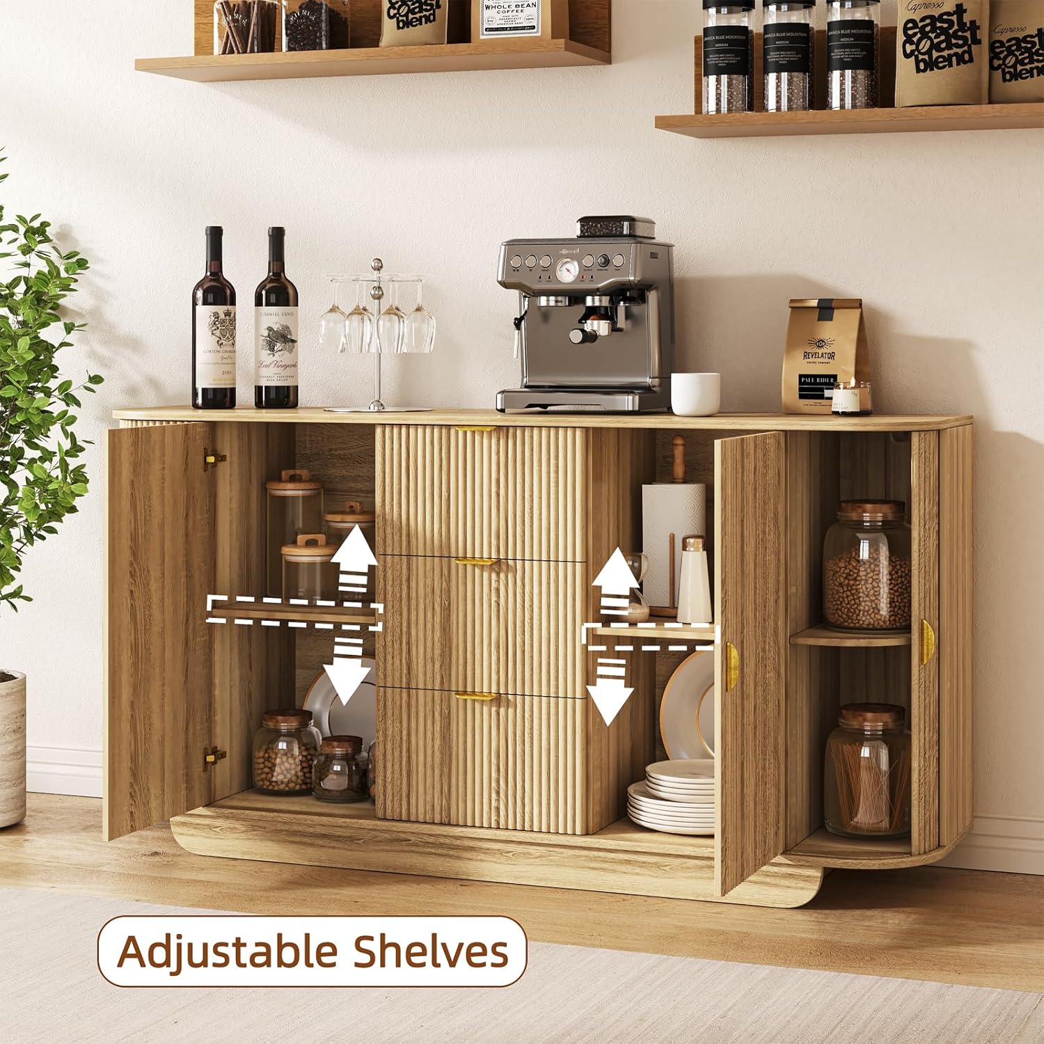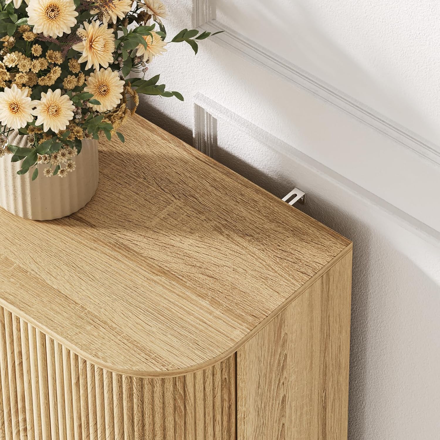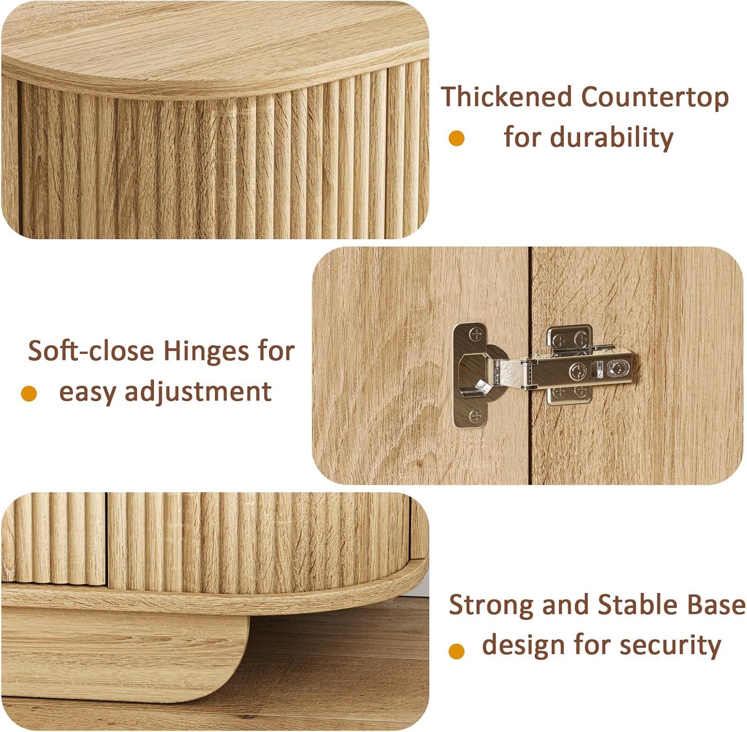- 【Practical & Stylish Dresser】This dresser is specially designed with curved edges,and equipped with easy sliding doors,making it a perfect wood dresser. The fluted design features long and vertical indentations carved into the surface of the dresser. These Flutes bring a sense of texture, elegance, and visual interest to the cabinet doors, creating a distinctive look.