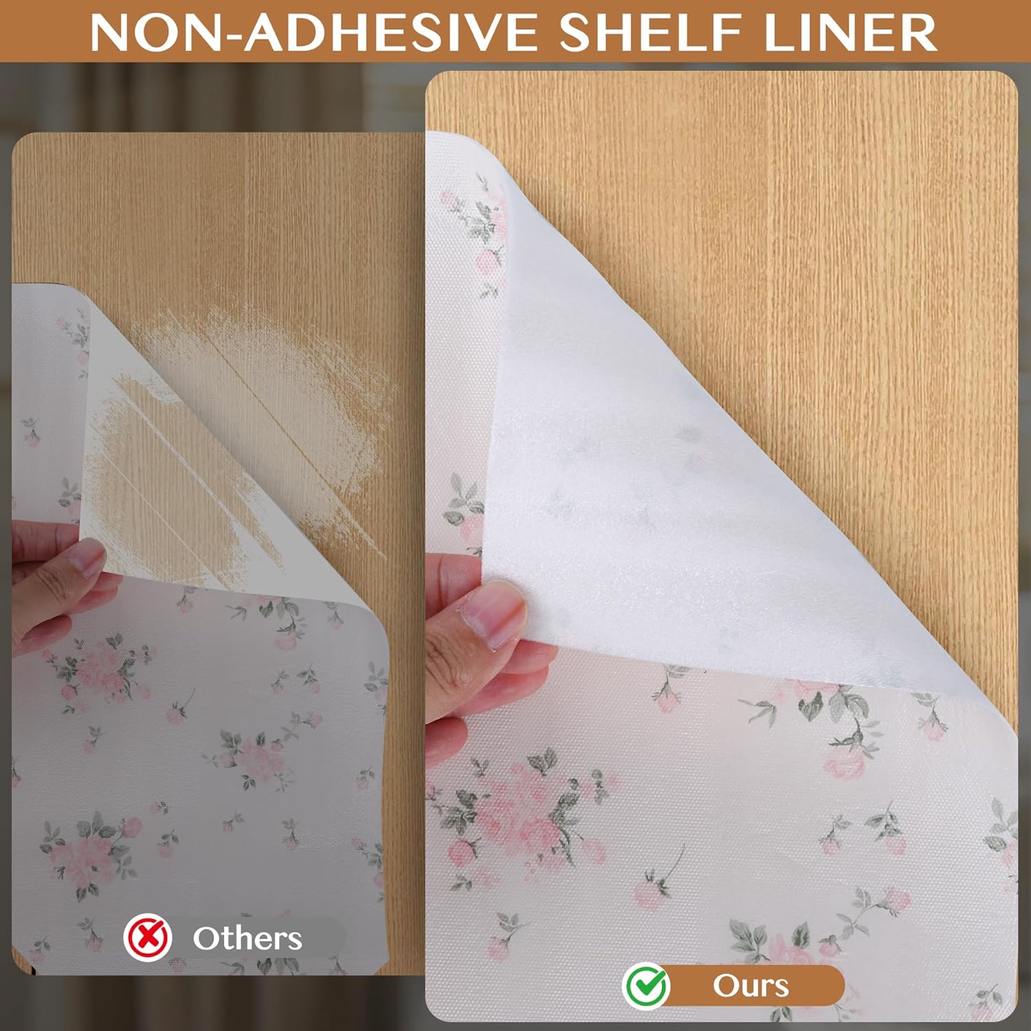 Non-Adhesive Shelf and Drawer Liner for Kitchen Cabinets, 12 in x 10FT Strong Non-Slip Cabinet Liners for Shelves, Refrigerator, Pantry Storage, Bathroom Closet, Easy to Clean, Floral