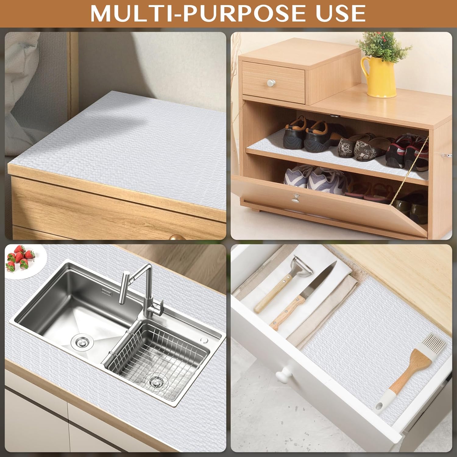 - Versatile Use for Whole Home: A versatile non-adhesive liner for countless applications. Use it to organize and line kitchen shelves, cabinet bottoms, bathroom drawers, utility cabinets, dresser drawers and book shelves. The perfect solution for home organization and shelf protection.