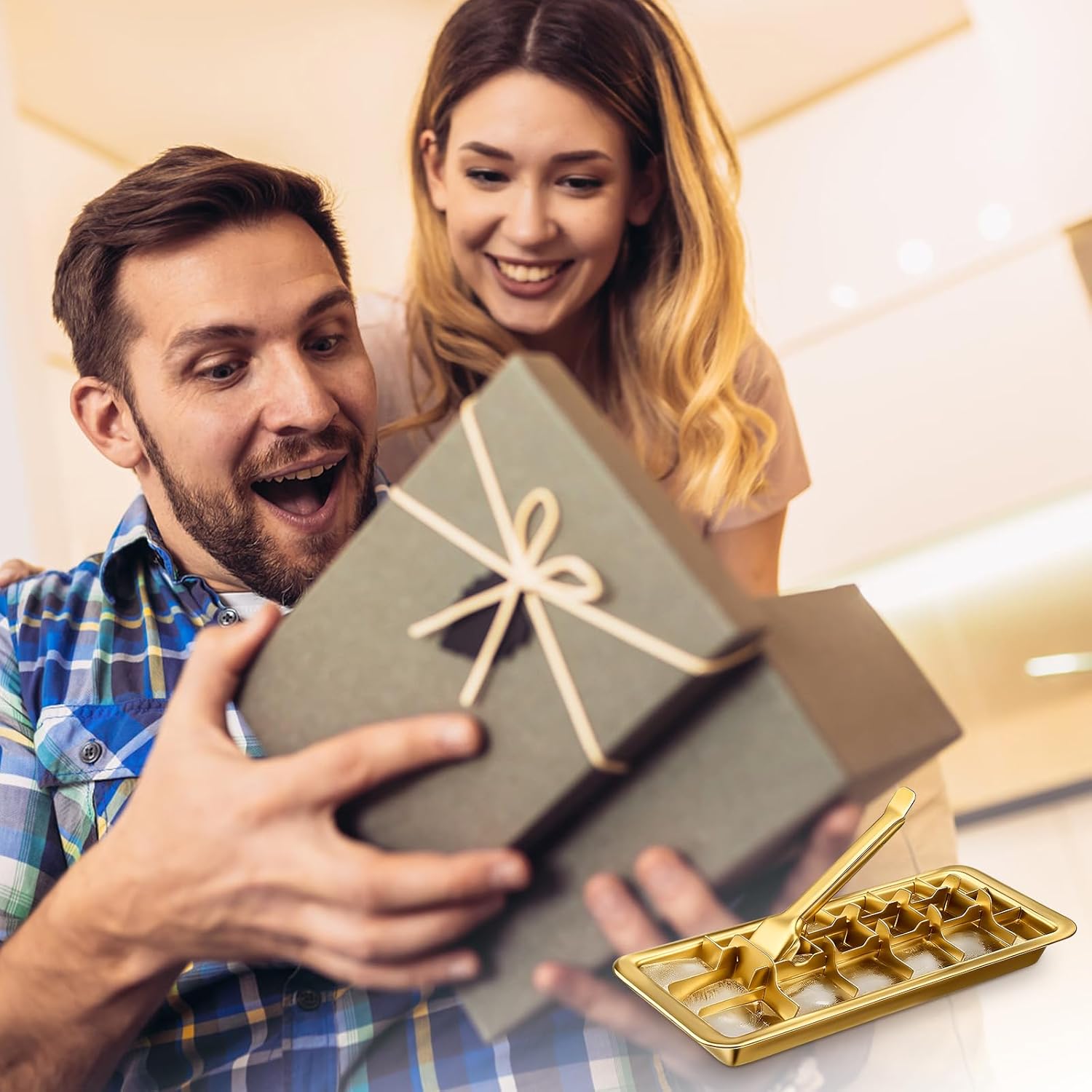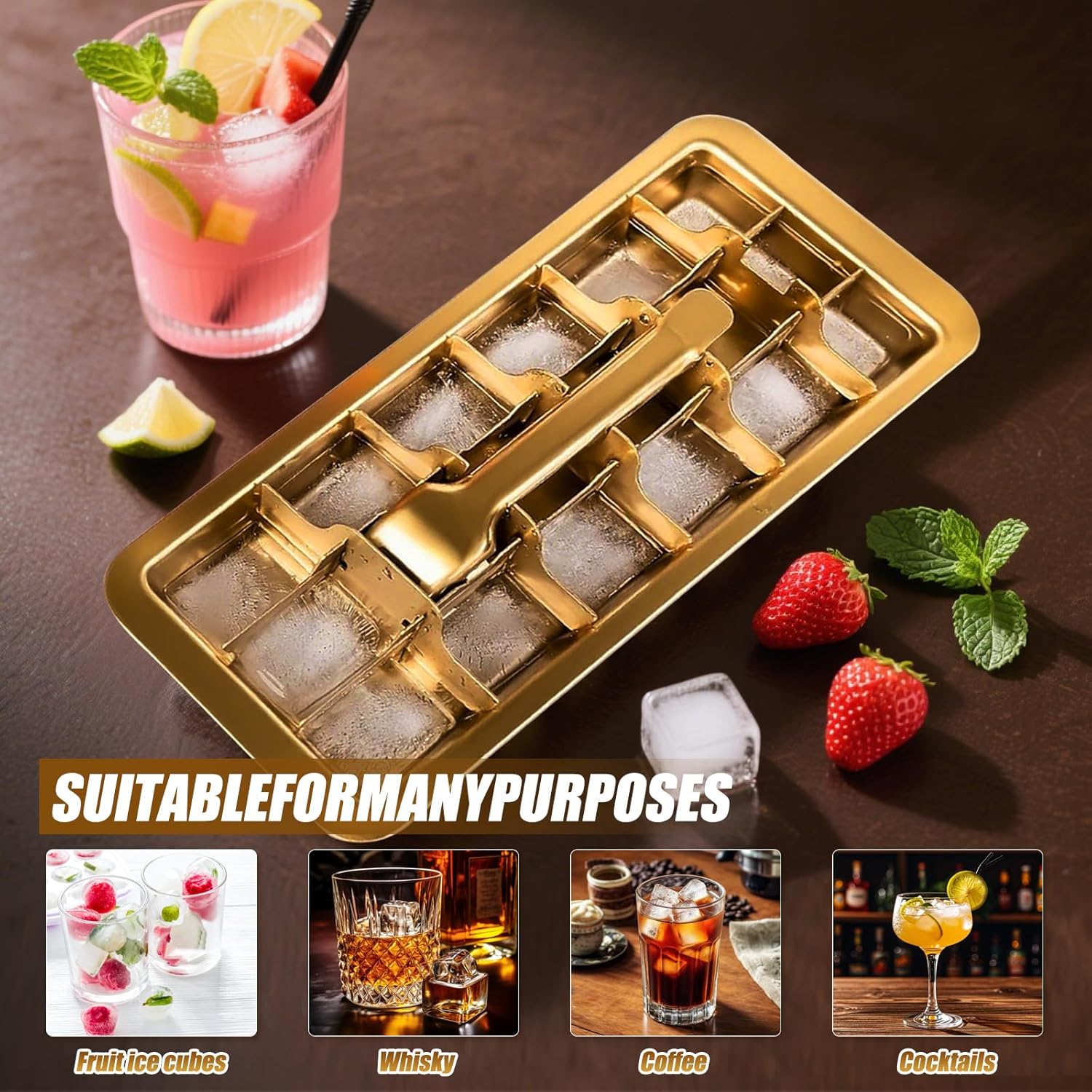 Professional Ice Cube Tray Gold-color, 18-Slot Stainless Steel, Heavy Duty Metal Freezer Mold with Lever Release, Bar & Kitchen Use, Send Goods from Local Warehouse