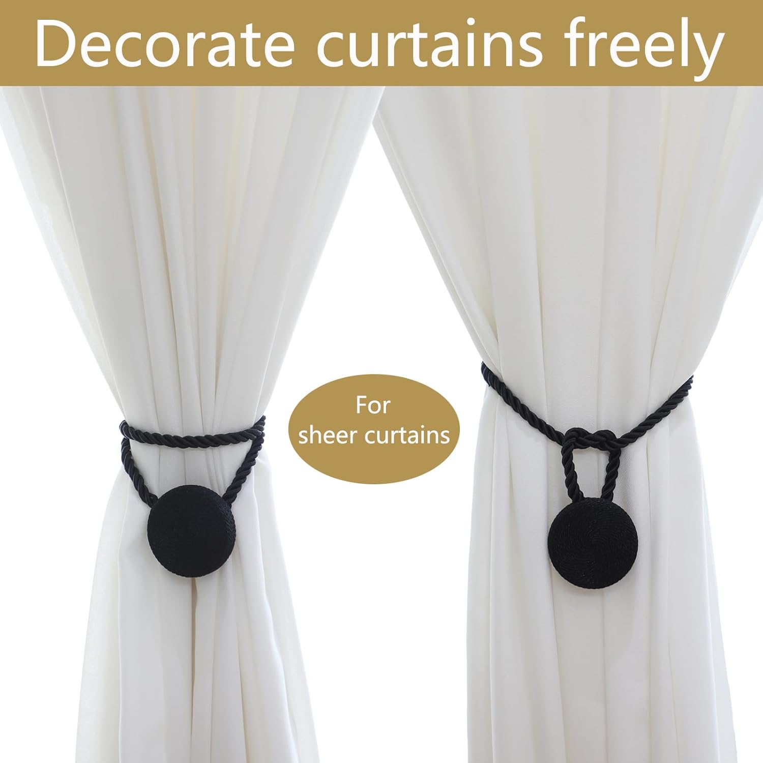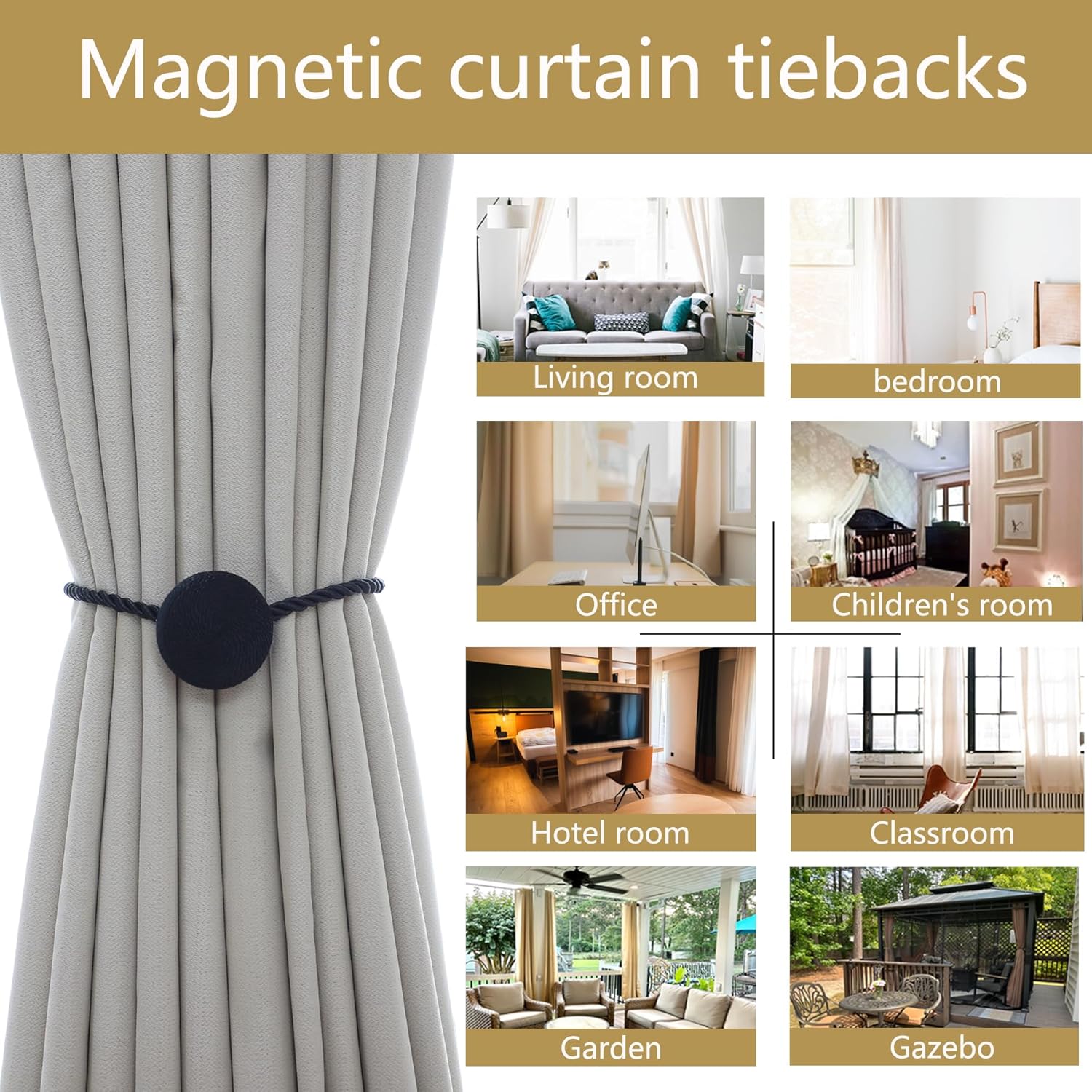 - π― Versatile Styling Anywhere: Versatile for Any Room & Curtain: These magnetic curtain tiebacks perfect for thick blackout drapes or sheer curtains, used fully tied or half-tied. Perfect for living rooms, bedrooms, offices & bathrooms. European braided design blends with farmhouse, modern, or classic decor. Holds thickest curtains yet gentle on fabrics.
