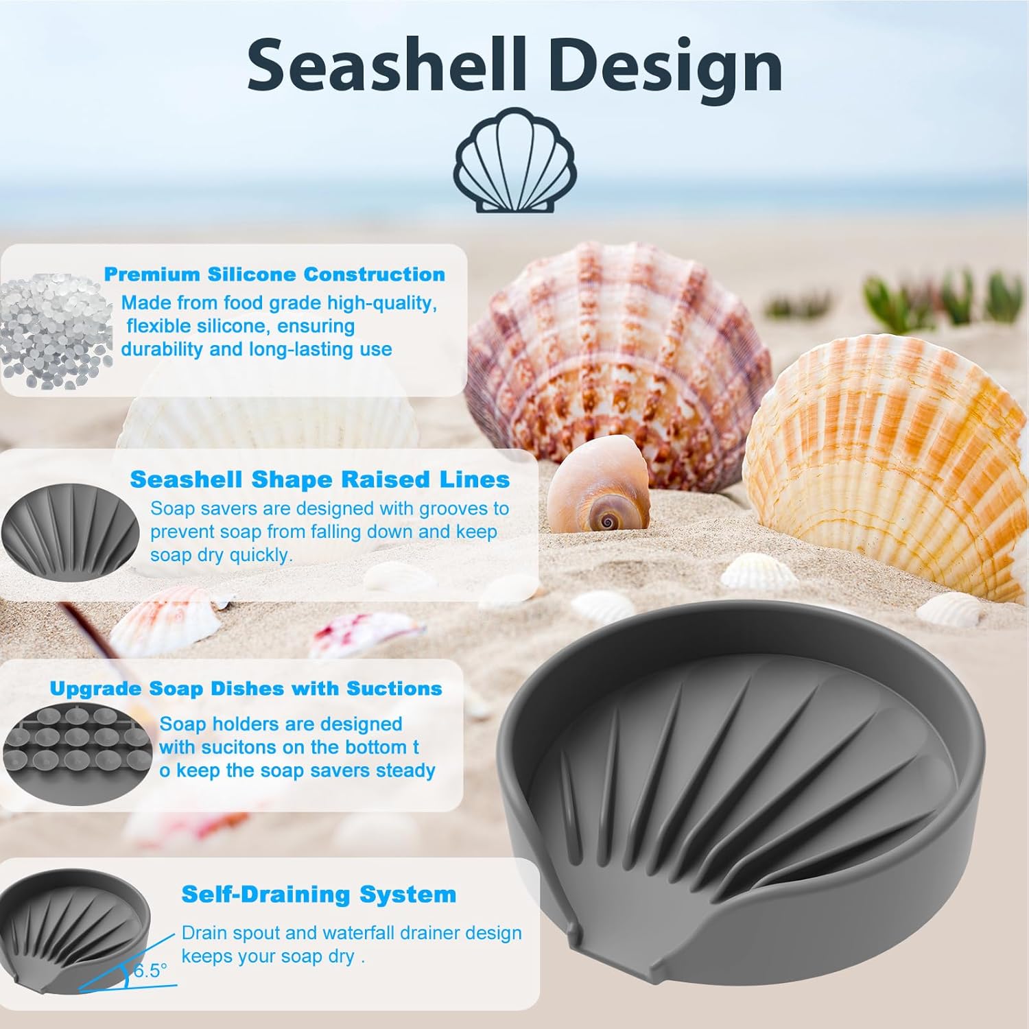 - Self Draining Soap Dish: The silicone shower soap dish is designed with an raised surface and a drain spout. It can automatically drain water into the sink, prevents soap from getting mushy and water from pooling on the countertop, keeping both clean