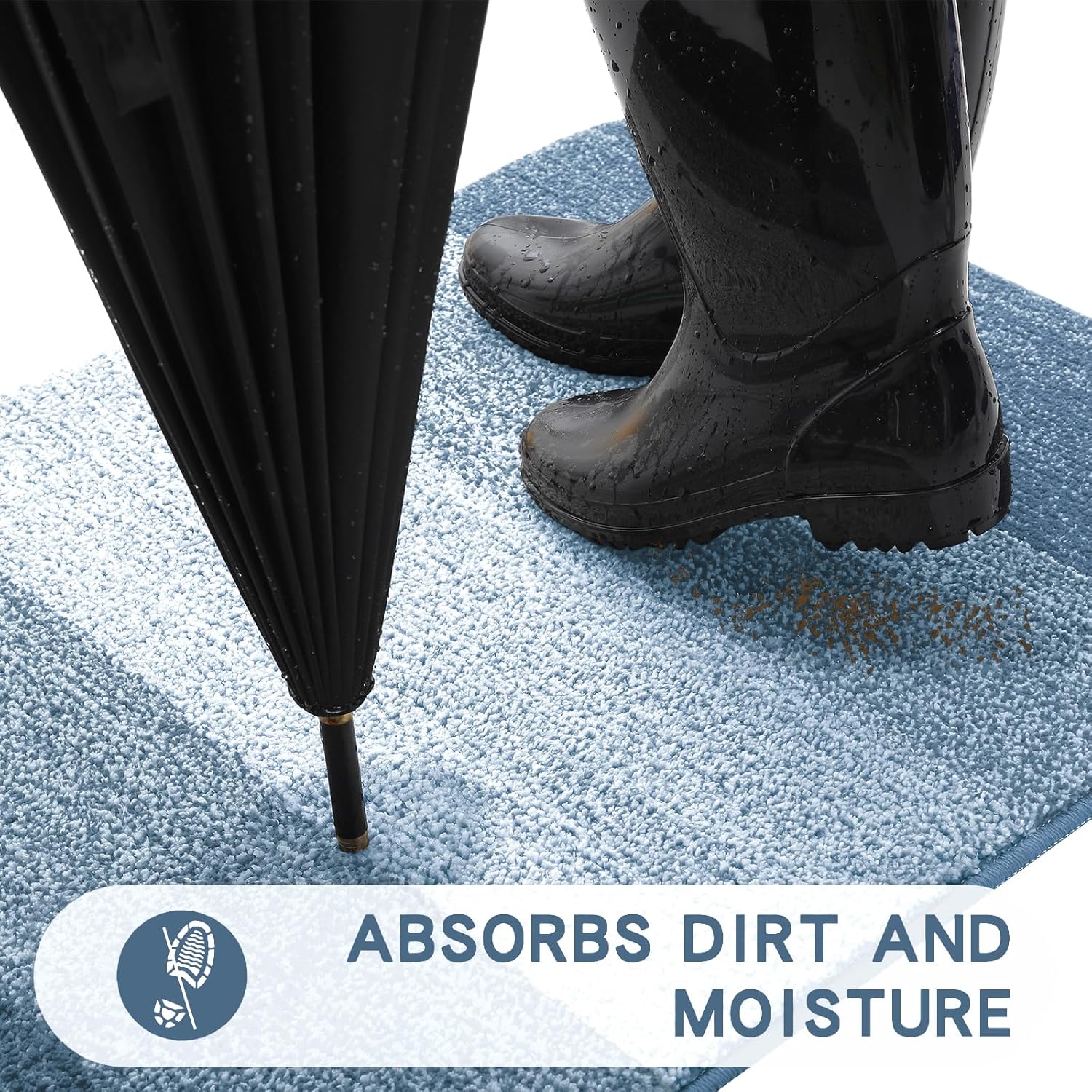 Kitinjoy Indoor Outdoor Door Mat, 36x24 Non-Slip Absorbent Dirt Trapper, Low-Profile Washable Inside Entrance Front Floor Mat, Sturdy Soft Entry Doormats for Entryway, Light Blue