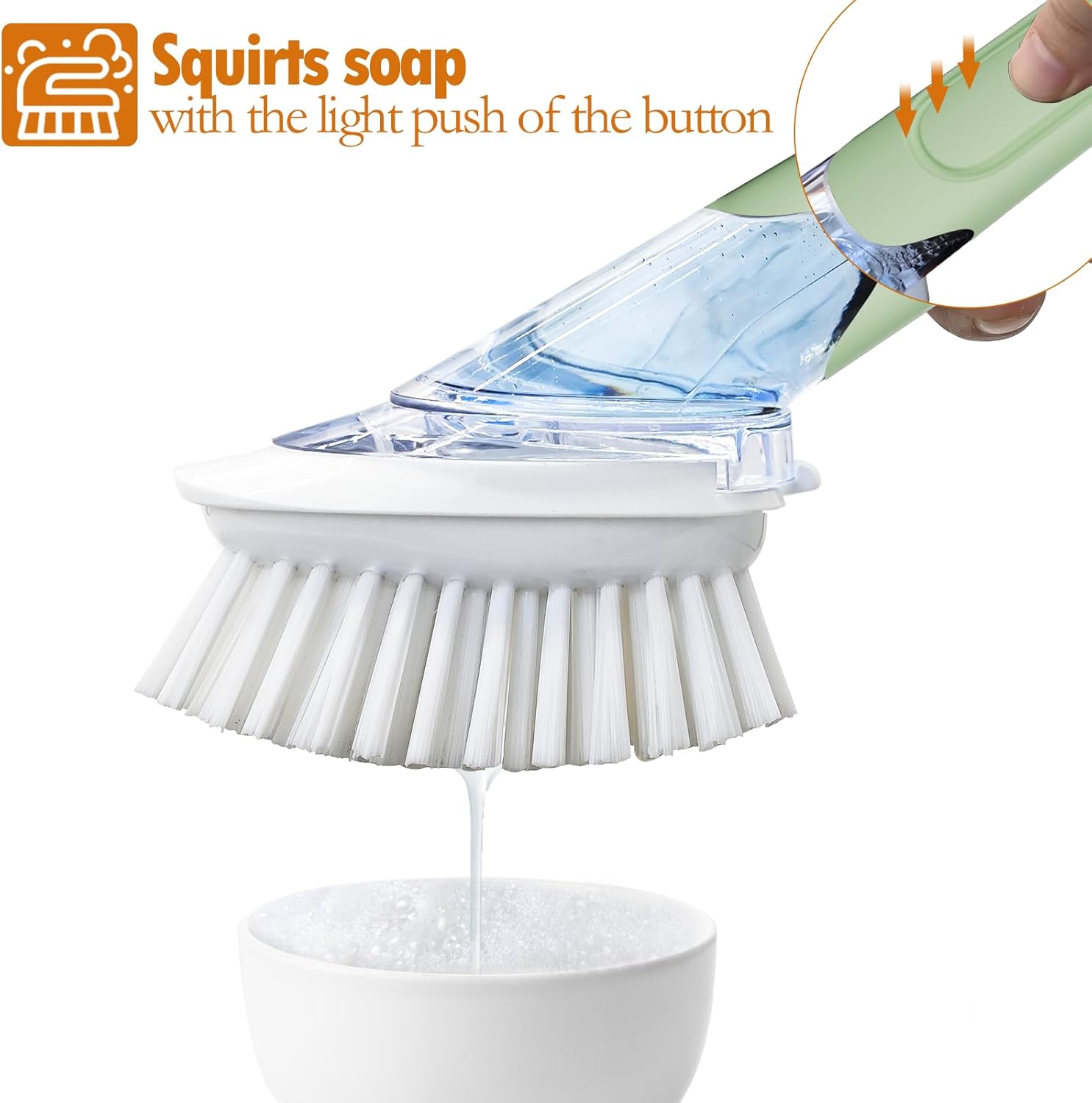 - Soap Dispensing Replacement Dish Brush Storage Set:1 dish brush with handle +2 brush refills +1 holder are included in a beautiful packaging box.