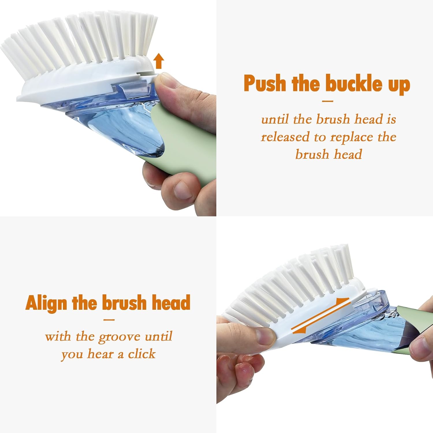 - 2 * replacement brush heads: 2 replaceable drill dishwand refills can be easily replaced with new brush heads. The dish scrub brush can be used for a long time. (Please refer to ASIN B0BK4NHM43 to order replacement brush refills. )