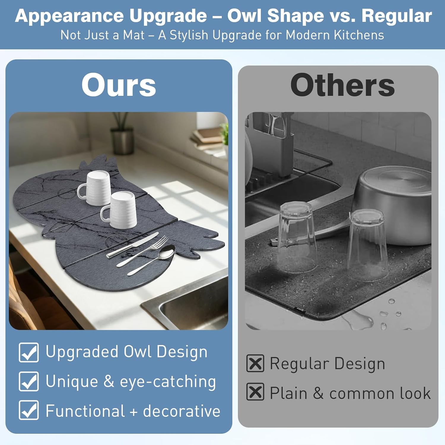 - 【Upgraded Owl Design with Elegant Marble Pattern】Stylish owl-shaped stone dish drying mat with a marble pattern adds a decorative and modern touch. Perfect upgrade for kitchens seeking both functionality and aesthetic appeal