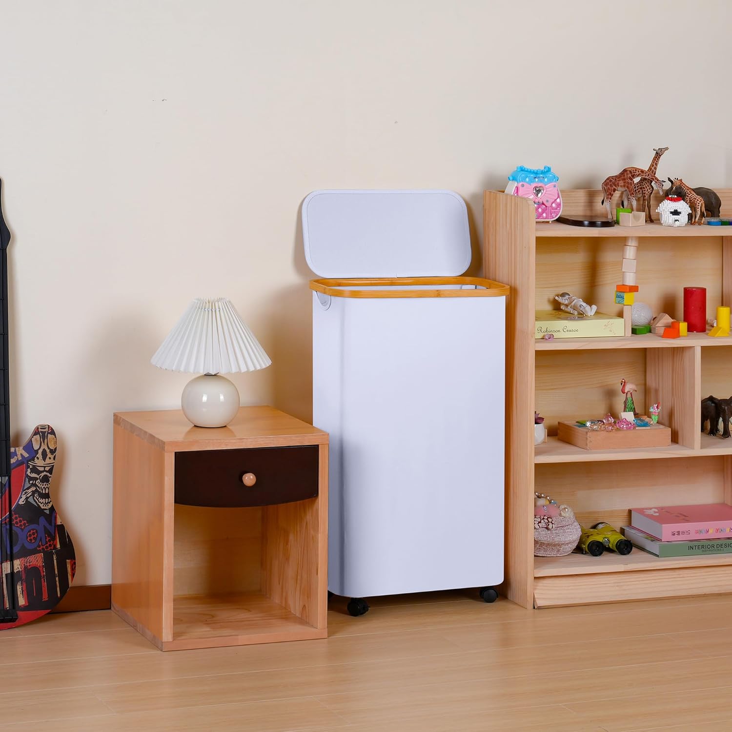 Slim Laundry Basket with Wheels,Narrow Hampers for Laundry,Freestanding Laundry Hamper with Lid&Bamboo Handles,Collapsible & Waterproof Tall Cloth Hamper for Dorm Family(60L White)