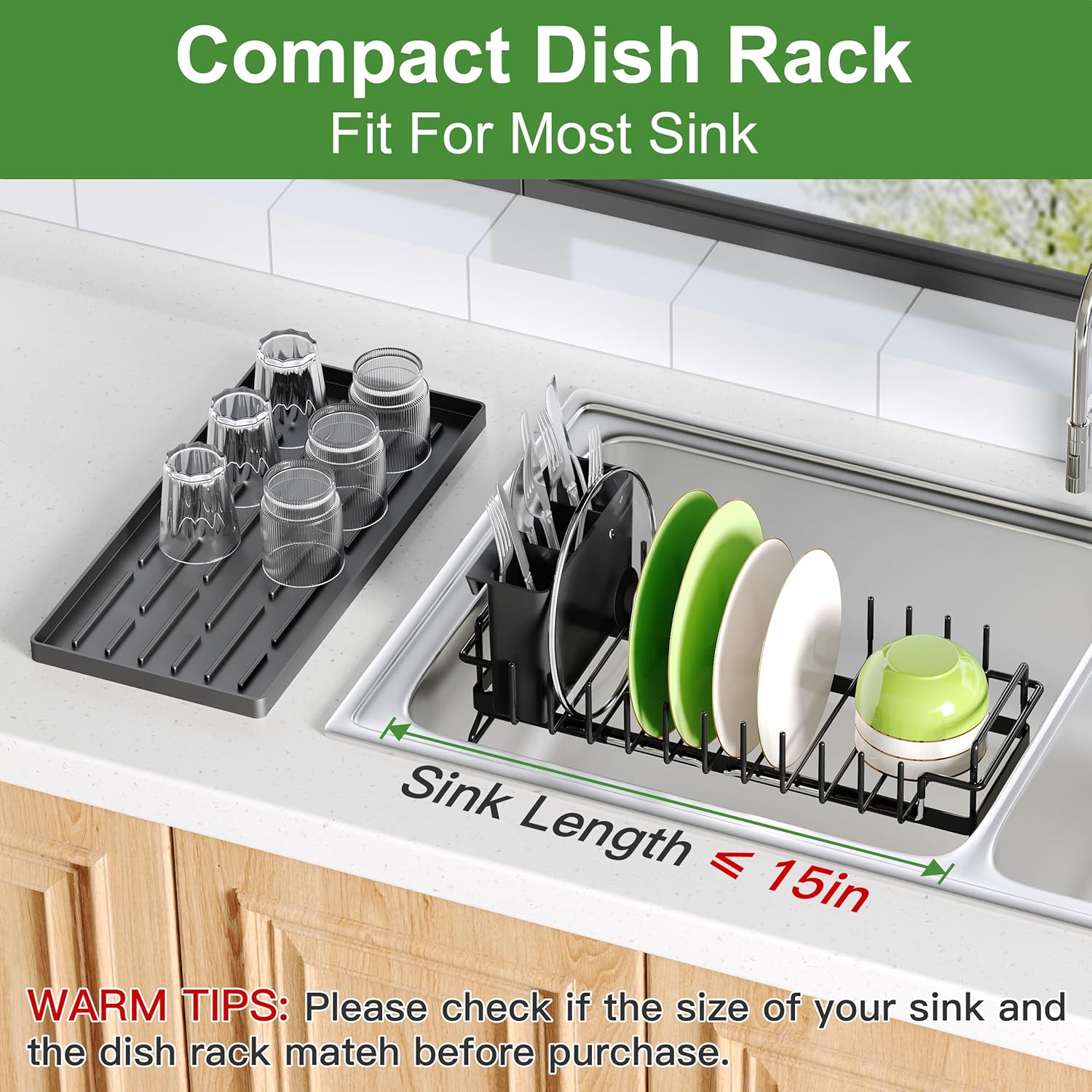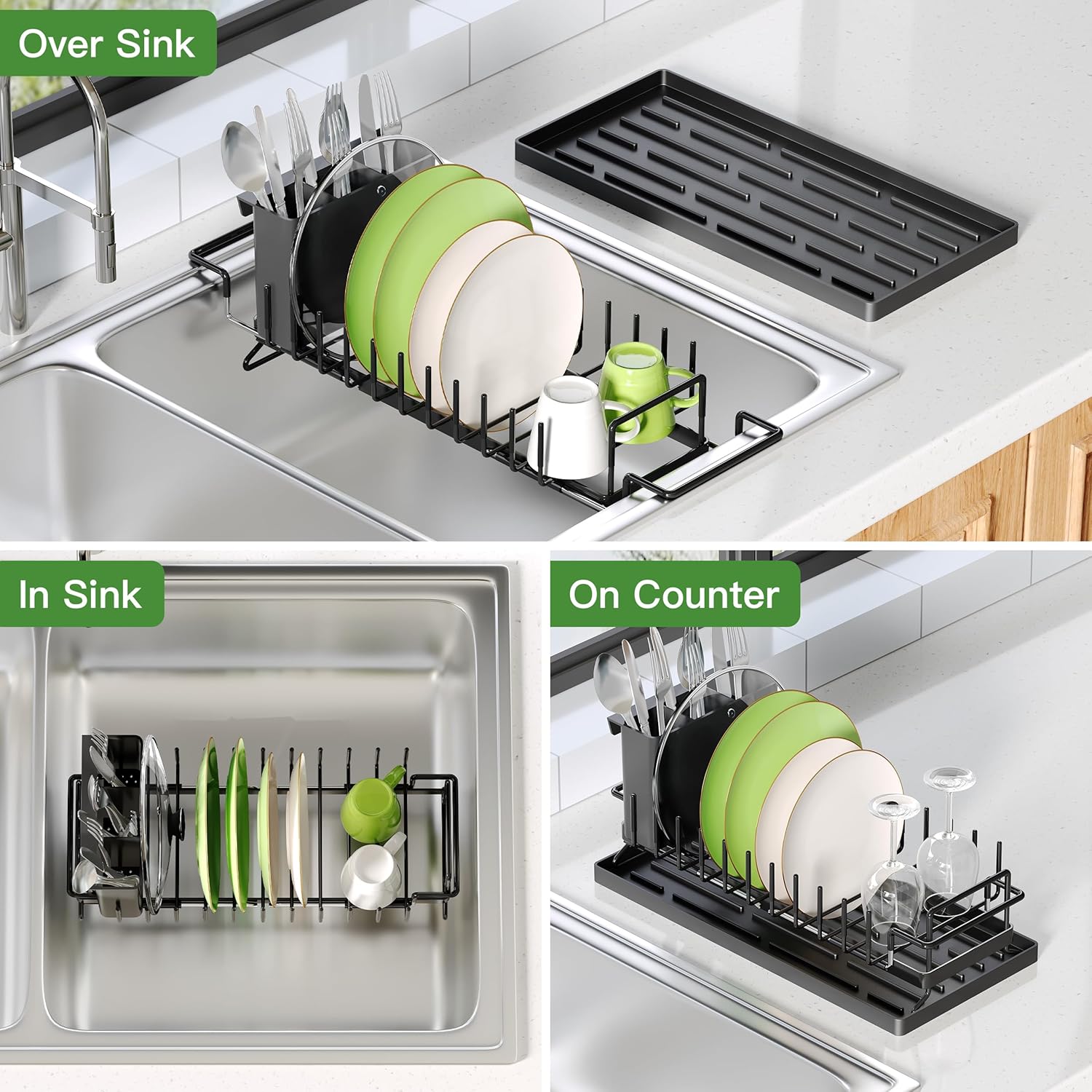 - ๐Small Space Kitchen Solution: This compact dish drying rack works over sinks, inside sink basins, or with tray on counter. Perfect small in sink dish drying rack that maximizes vertical space for precious kitchen areas.