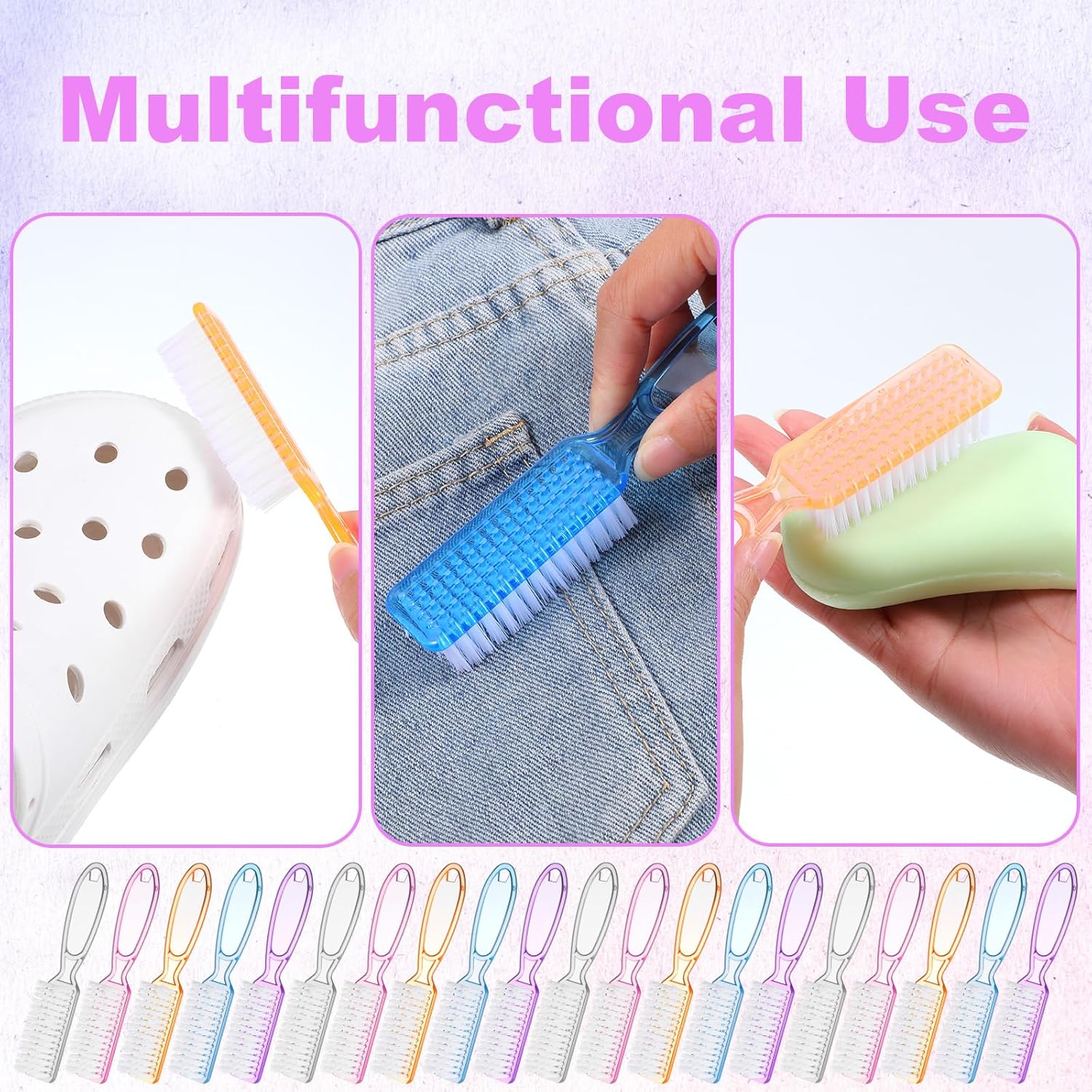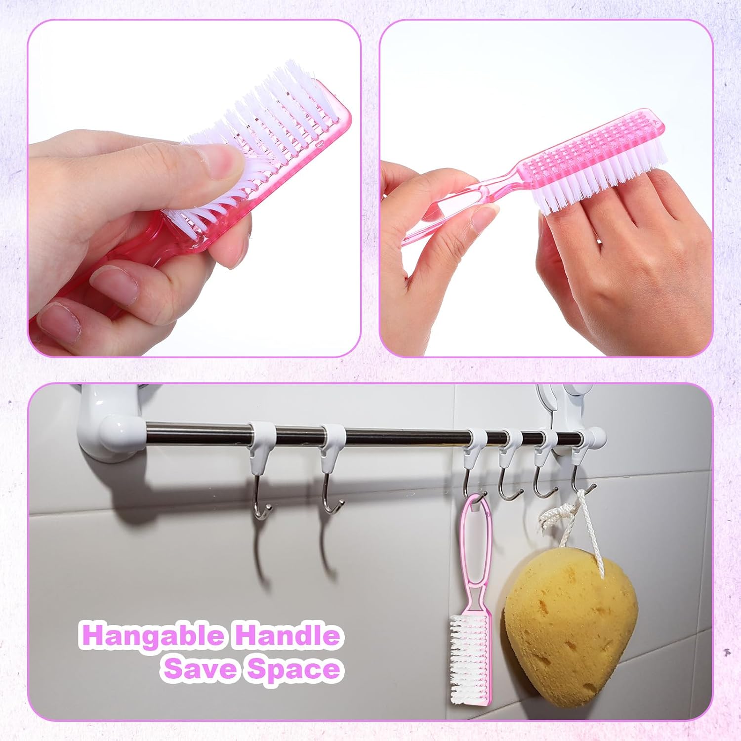 - 【Portable Design】Lightweight and compact (14.5x2.5 cm), these nail brushes are easy to store in drawers, travel bags, or hang via the convenient top hole. Their space-saving design makes them perfect for home use, travel, or on-the-go grooming. The durable construction ensures they withstand frequent use without losing shape or functionality.