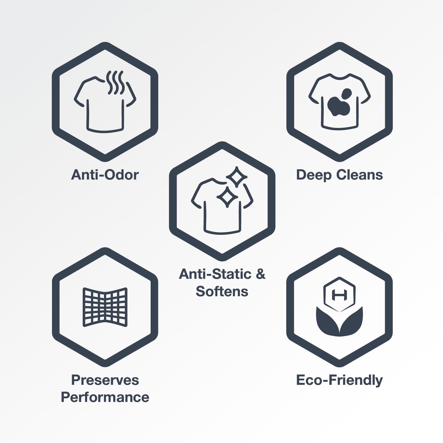 - POWERFUL FORMULA: Traditional laundry soap leaves leftover residue behind that corrode and clog your high-performance gear leaving them smelly and reducing their wickability. HEX Performance liquid active wear laundry detergent penetrates todayβs ultra tight-knit performance fabrics, like your favorite yoga tops, leggings, sport bras, or compression shorts.