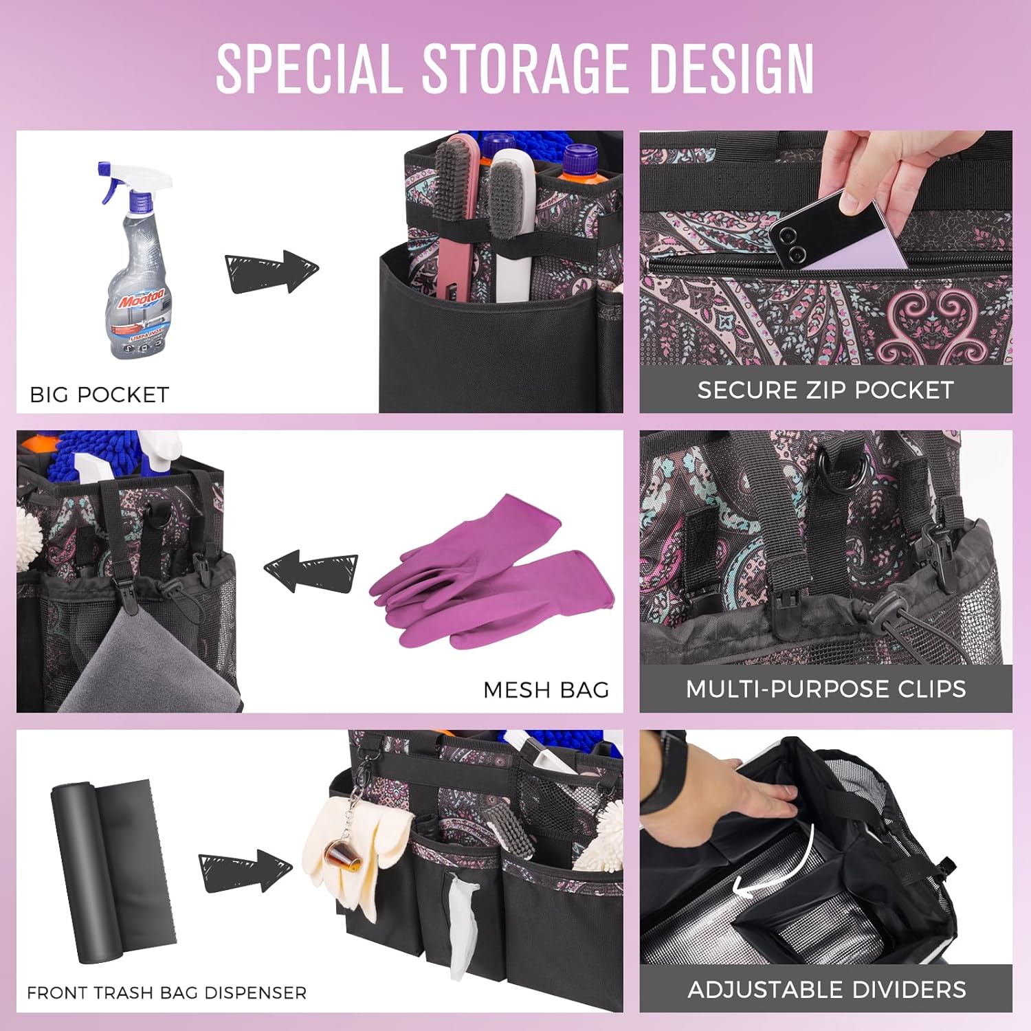 - Large Wearable Cleaning Caddy: Our cleaning organizer bag is perfect for storing cleaning supplies & tools, measures 15.7 x 9.6 x 9.1 inches. Cleaning caddy bag with handle and adjustable shoulder straps for easily cleaning in the home, kitchen, sink, car, and outside. Keep your cleaning items well-organized and neatly. Great for maids and housekeepers