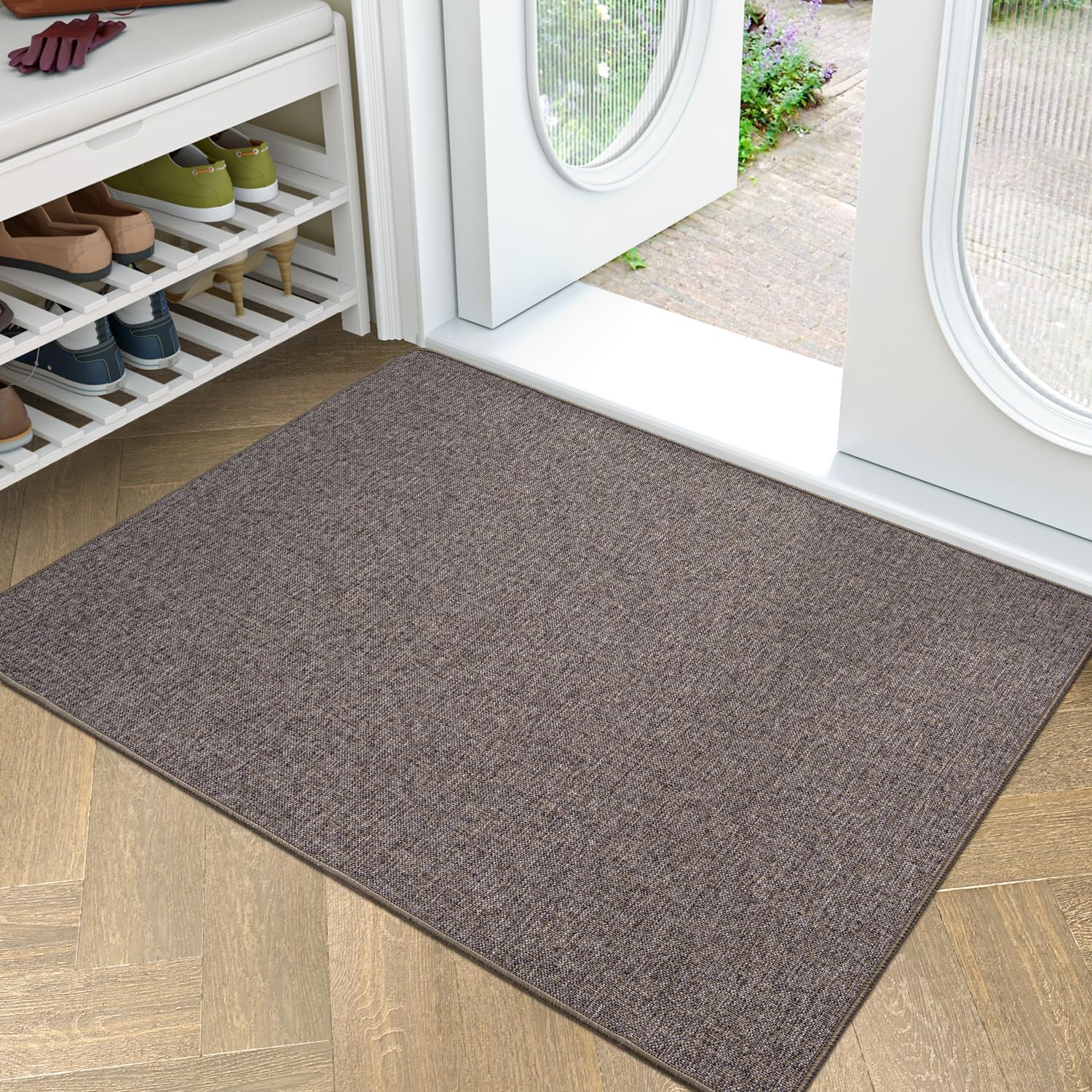 LUMI Ultra Thin Door Mat for Entryway, 32"x48" Low Profile Non Slip Rubber Backing Indoor Doormat, Easy Clean Welcome Entrance Mat for Inside House, Patio, Brown