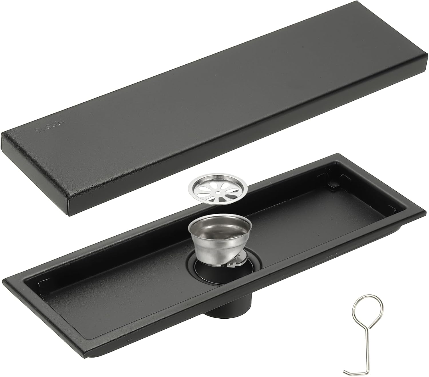 uxcell Rectangular Shower Drain, Brushed 304 Stainless Steel Odor-Proof Floor Drain Linear Shower Drain Hair Catcher for Bathroom Kitchen and Laundry Room(12 Inch, Black)