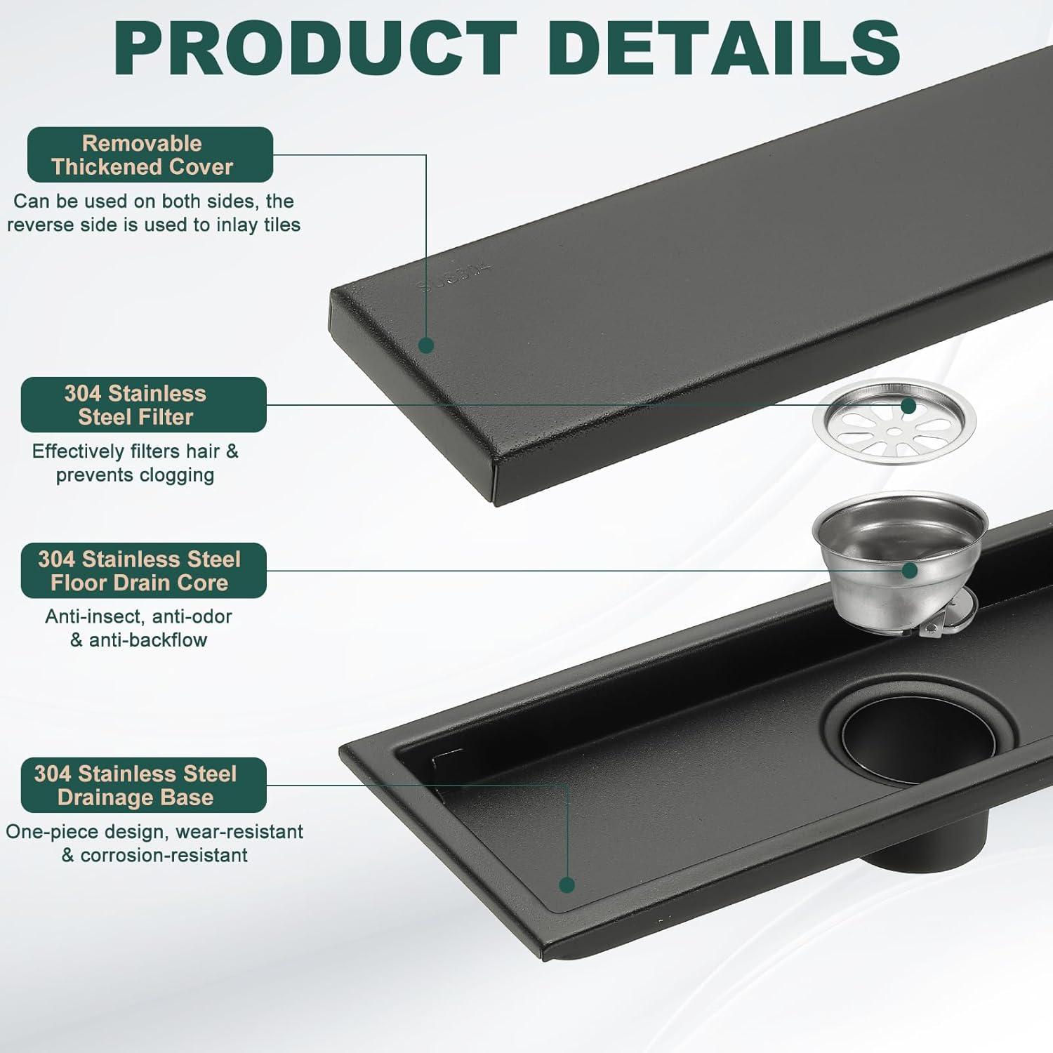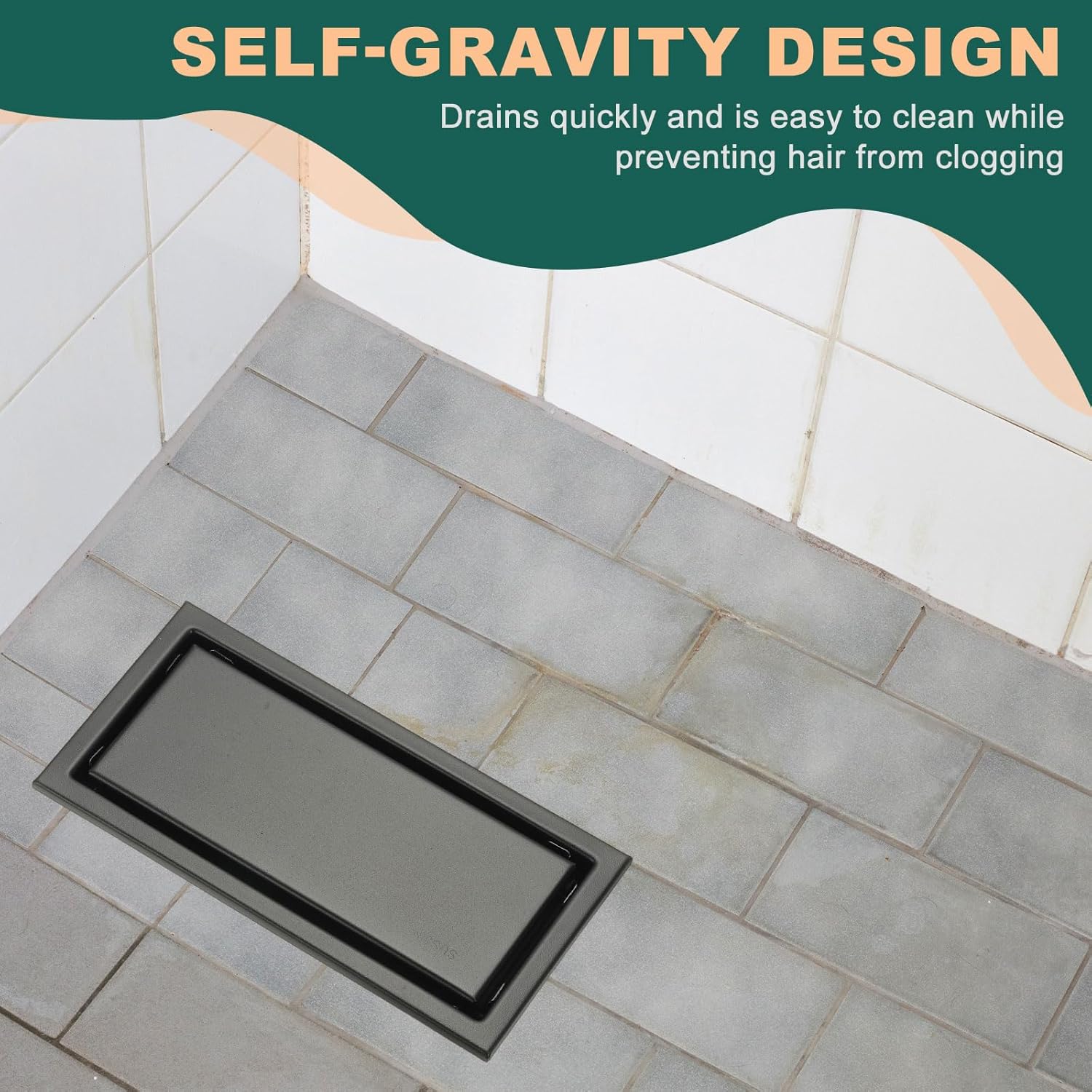 - High-Capacity Drainage System - This rectangular shower drain features a collection area 3X larger than standard drains, enabling powerful, clog-resistant water flow for faster drainage. The expanded surface area prevents water pooling, keeping floors dry and safe even during heavy shower use.