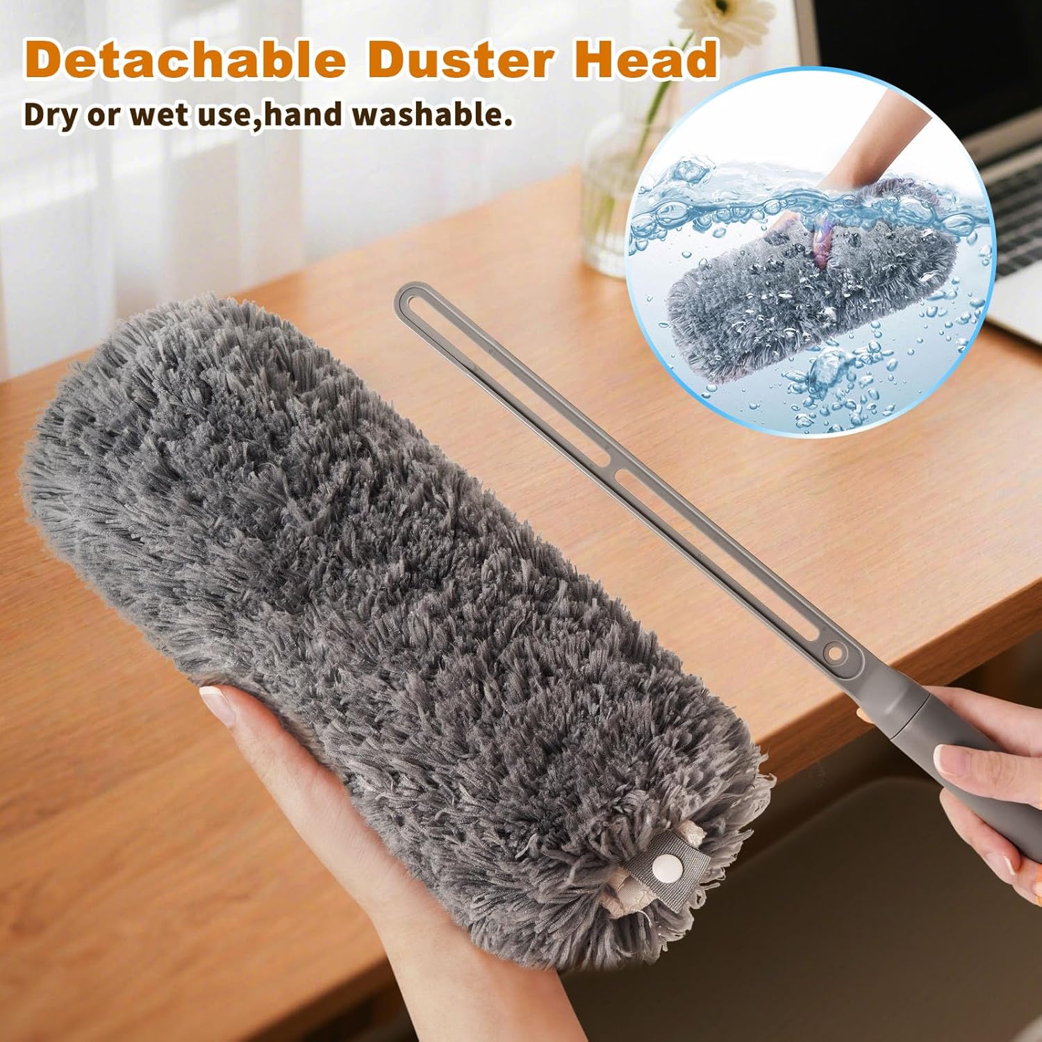 Microfiber Duster with Washable and Reusable Duster Head, Microfiber Dusters for Household Cleaning, Gray