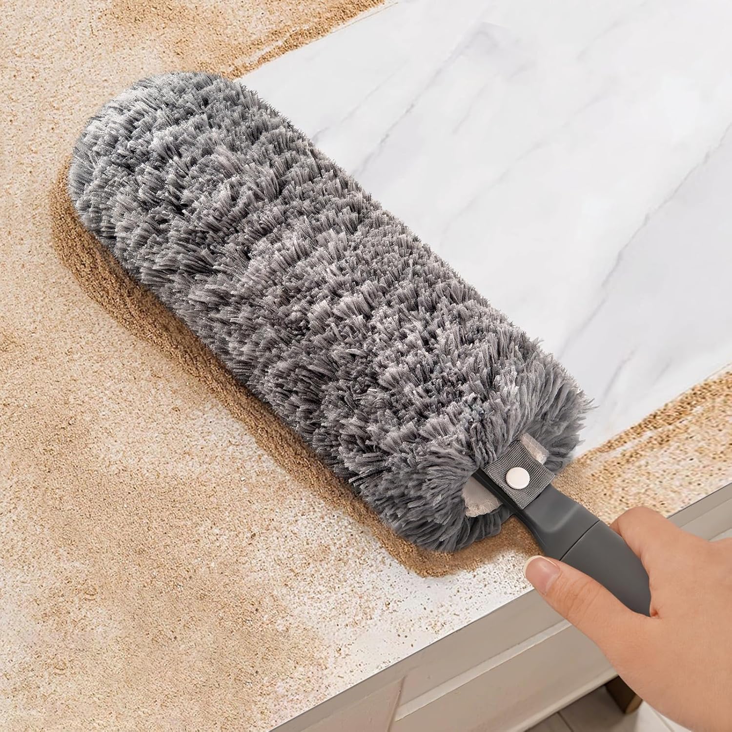 - CAPTURE AND LOCK IN DUST - The microfiber dust collector features a fluffy microfiber dust head that covers a large cleaning surface, capturing and retaining dust and fibers like a magnet, rather than pushing them around.