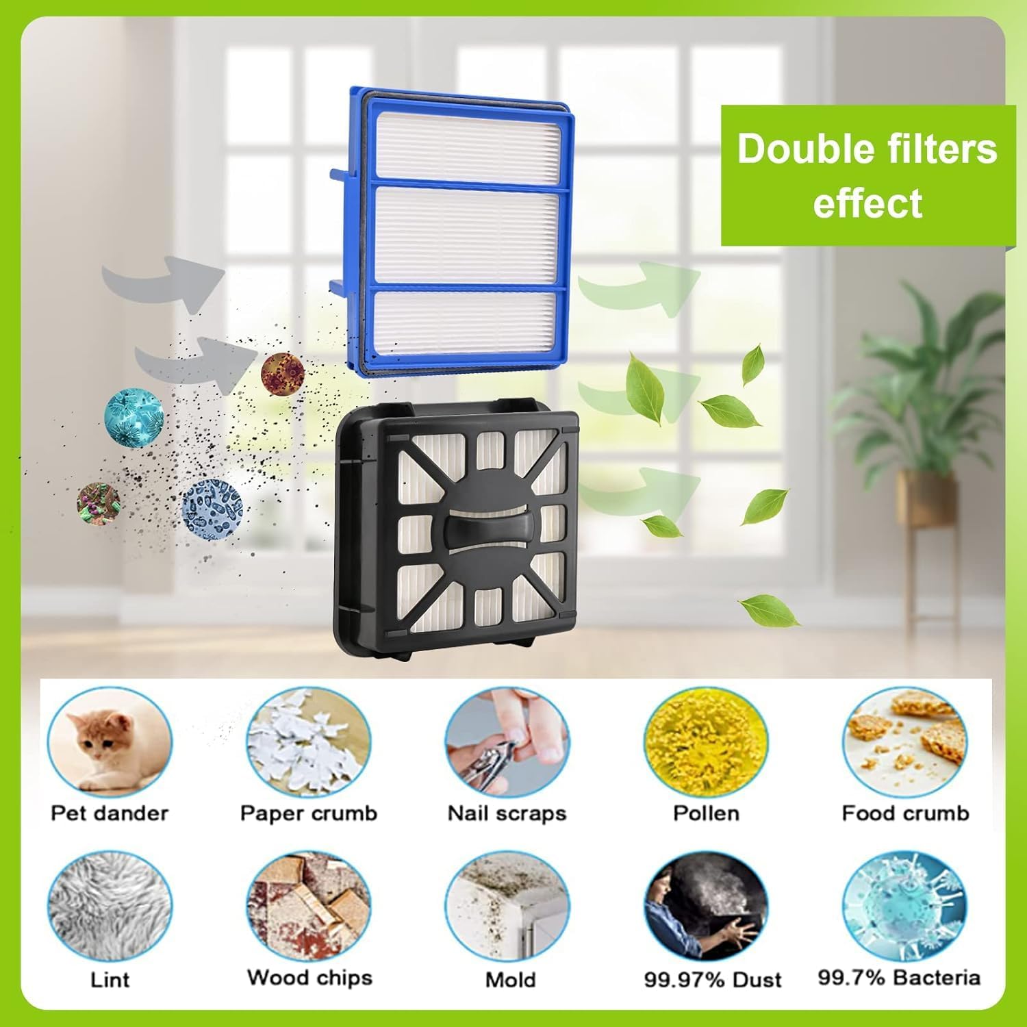 - Filtering Capabilities up to 99.97%: Shark RV912S replacement parts with H13 high-efficiency, our HEPA filters have strong filtering capabilities to capture small particles such as food, hair, dirt, and pet dander, and prevent over 0.1 microns of tiny dust from entering your brush-less motor, extending the service life of your RoboVac