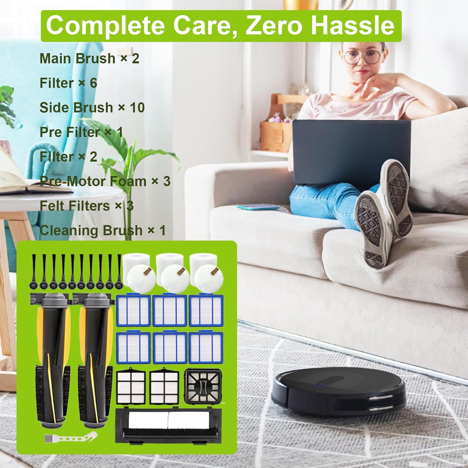 - Replacement Kit: Including Main Brush × 2, Filter × 6, Side Brush × 10, Pre Filter × 1, Filter × 2, Pre-Motor Foam × 3, Felt Filters × 3, and 1 Cleaning Brush