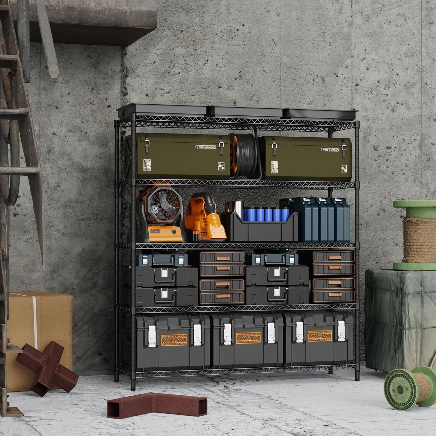 5 Tiers Storage Shelves Load 3300LBS, Metal Shelving Wire Metal Shelving Unit Shelves for Storage Adjustable Garage Shelving for Pantry Kitchen Garage Black 17.7" D x 59.1" W x 70.4" H