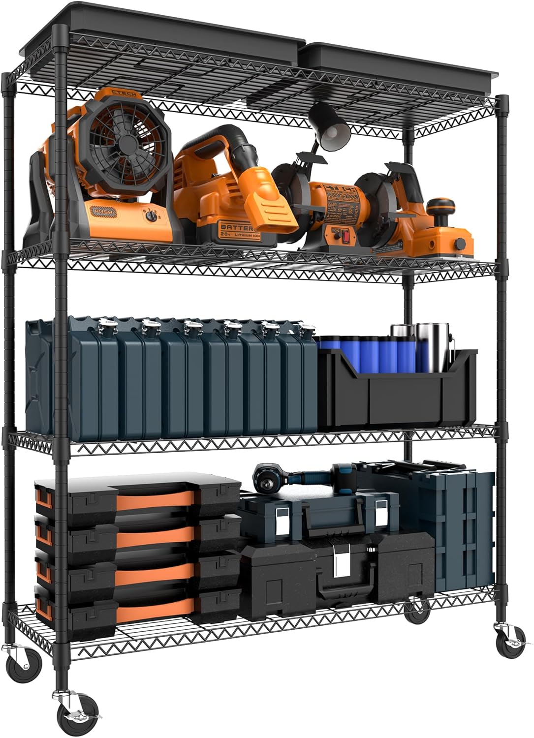 4 Tiers Storage Shelves Load 1400LBS, Metal Shelving Wire Metal Shelving Unit Shelves for Storage Adjustable Garage Shelving for Pantry Kitchen Garage Black 17.7" D x 47.3" W x 62.7" H