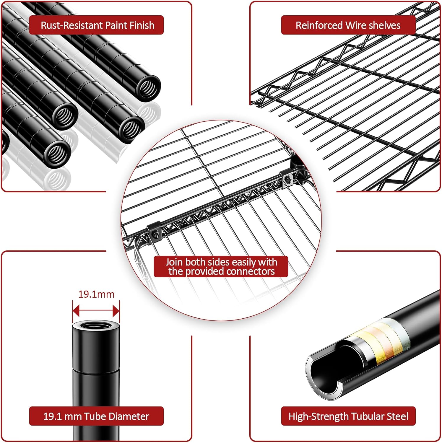 - 【Heavy-Duty Metal Construction】 Crafted from premium steel with a durable coating, this shelving unit offers excellent load-bearing capacity and stability. Built to resist rust and corrosion, ensuring long-lasting use even in humid environments.