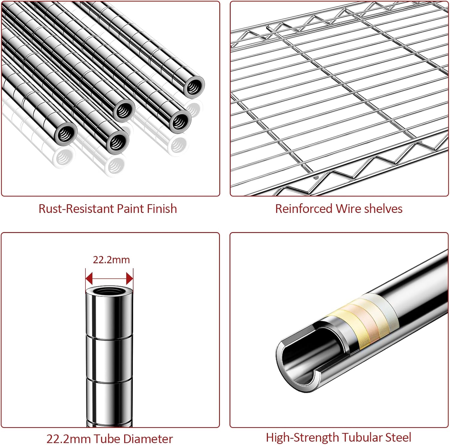 - ăDurable Carbon Steel Constructionă Made from high-quality carbon steel, this rack provides outstanding strength, durability, and corrosion resistance, ensuring reliable performance and long-lasting use with a clean, modern appearance.